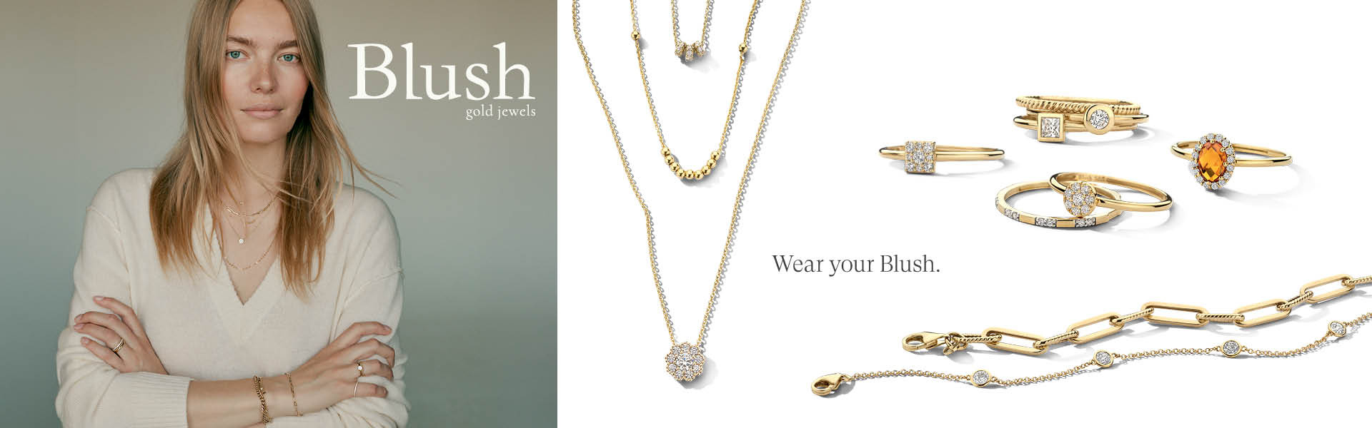 Betaalbaar goud, Blush maakt het mogelijk. Klassieke verfijnde sieraden gezet met zirkonia in geel-, wit-, en roségoud.