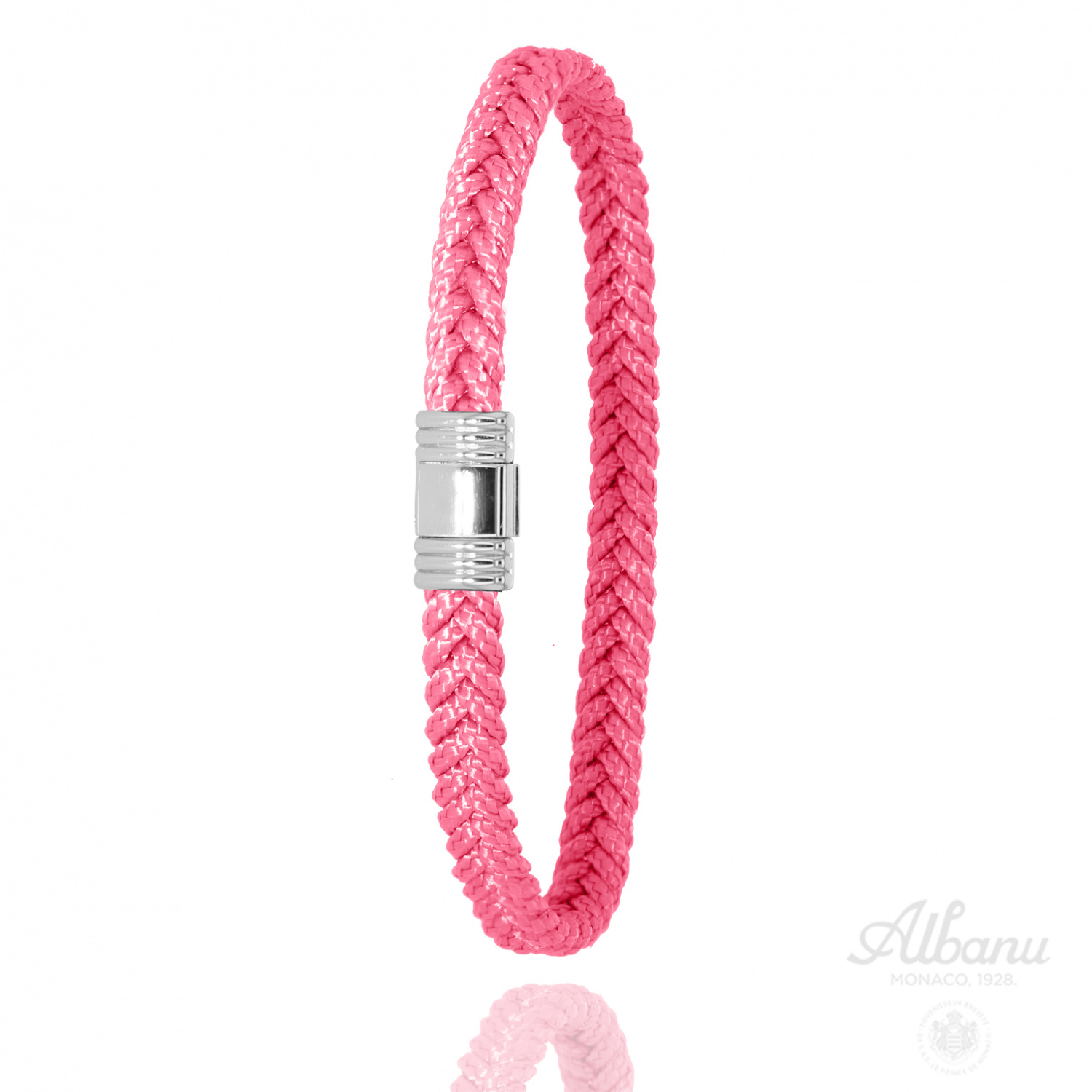 This Albanu bracelet is made of braided pink sailing rope. A luxurious and sporty bracelet that is subtle. The bracelet is 6mm wide and has a specially designed steel clasp, which is worn at the top of the arm. This bracelet is suitable for men and women, we have a length of 18 cm in stock, other lengths are available on request.