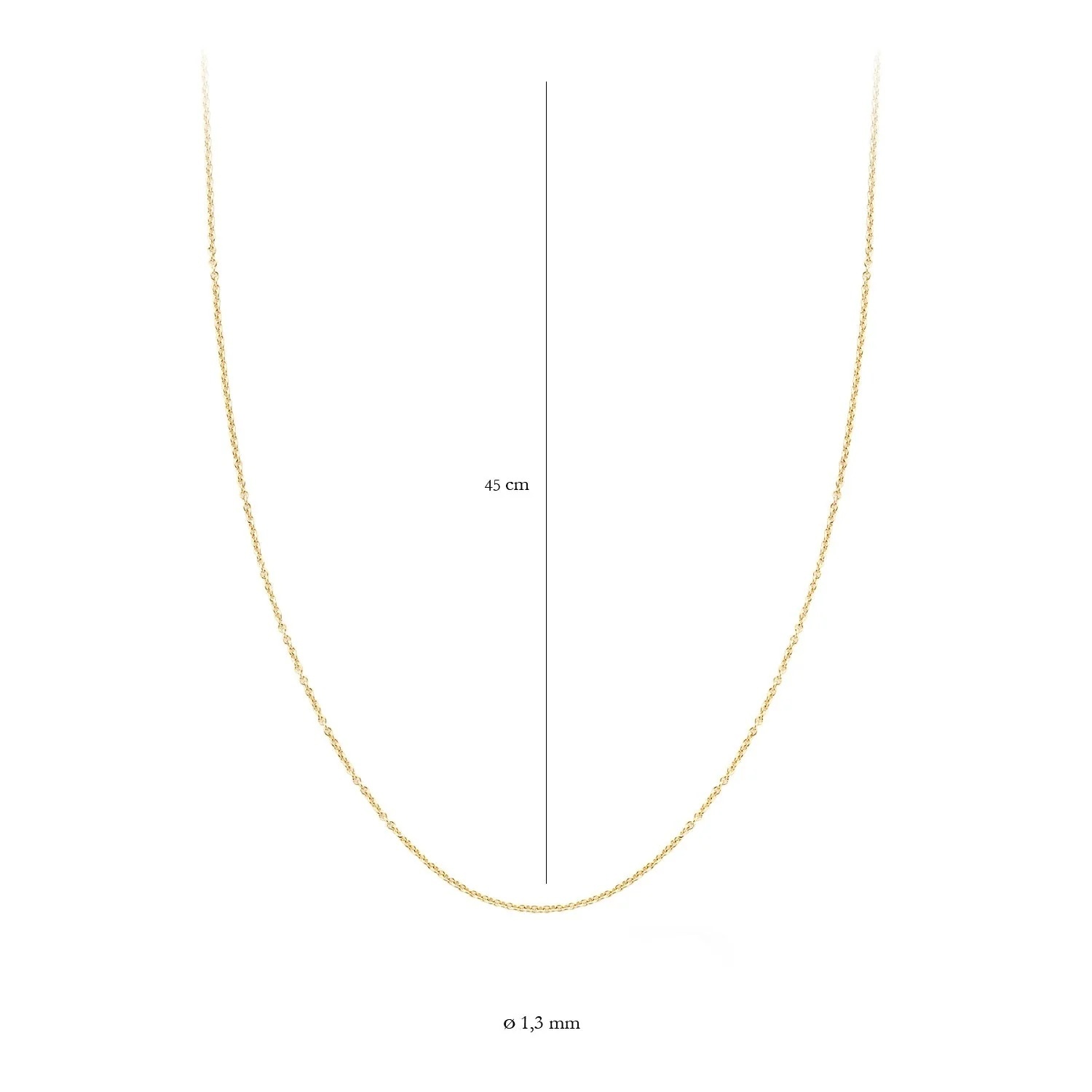 Perfect base. This elegant necklace is made of 14k yellow gold rolo links with a diameter of 7 mm. It has a lobster clasp and is suitable for all Blush pendants, but can also be worn as a stylish and sophisticated accessory.