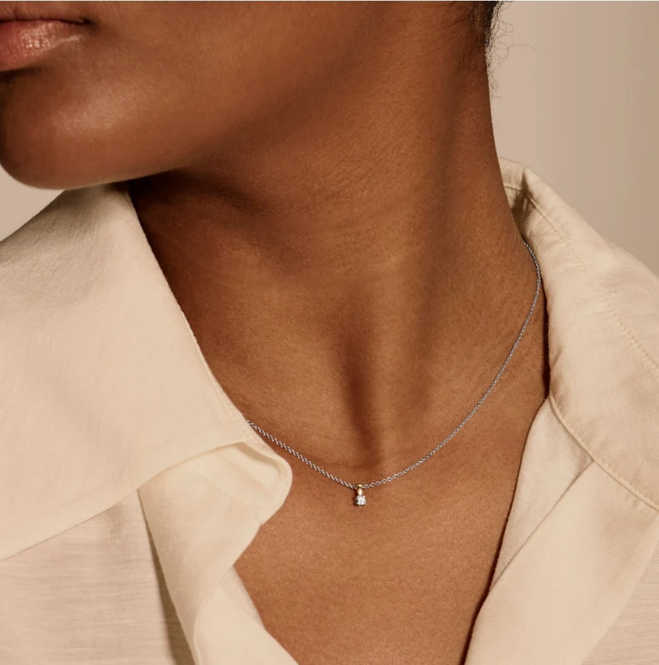 This bicolor pendant is classic, elegant and wearable every day. A subtle sparkle of diamond for every occasion.