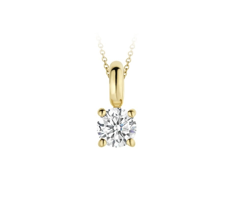 This special 14k yellow gold pendant with a zirconia of 3.8mm in diameter in chat setting has a total length of 8.6mm. The pendant is supplied without a necklace but can be beautifully combined with one of the gold chains from our collection.