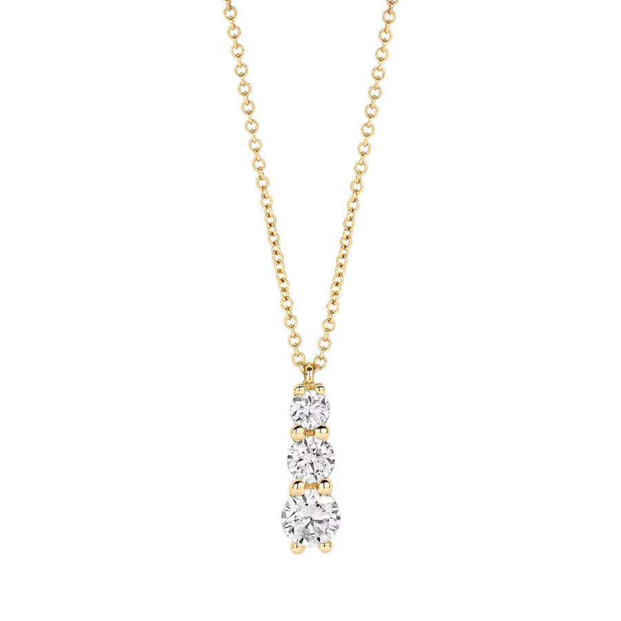 Discover this beautiful 42cm 14k yellow gold necklace with an anchor link. The pendant features three brilliant lab-grown diamonds, set in a staggered pattern, with weights of 0.07ct., 0.14ct., and 0.22ct. This piece of jewelry gives every outfit a timeless, elegant shine. A stylish addition for you!