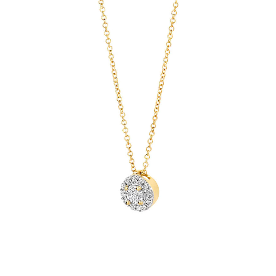 Sparkling lab diamonds adorn the pendant of this 14k yellow gold necklace. The total carat weight of the diamonds is 0.22ct and the length of the necklace is 42cm. Wear this stylish necklace on its own or pair it with other lab diamond jewelry from our collection.
