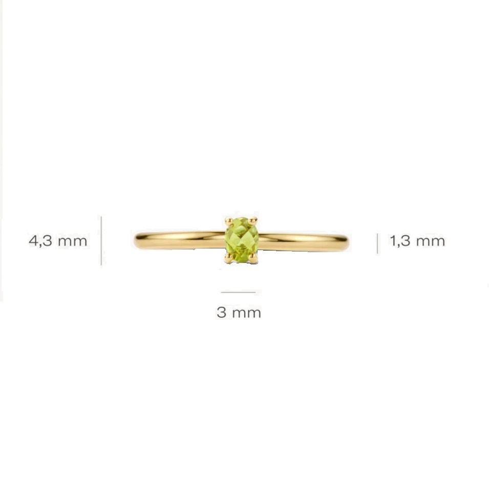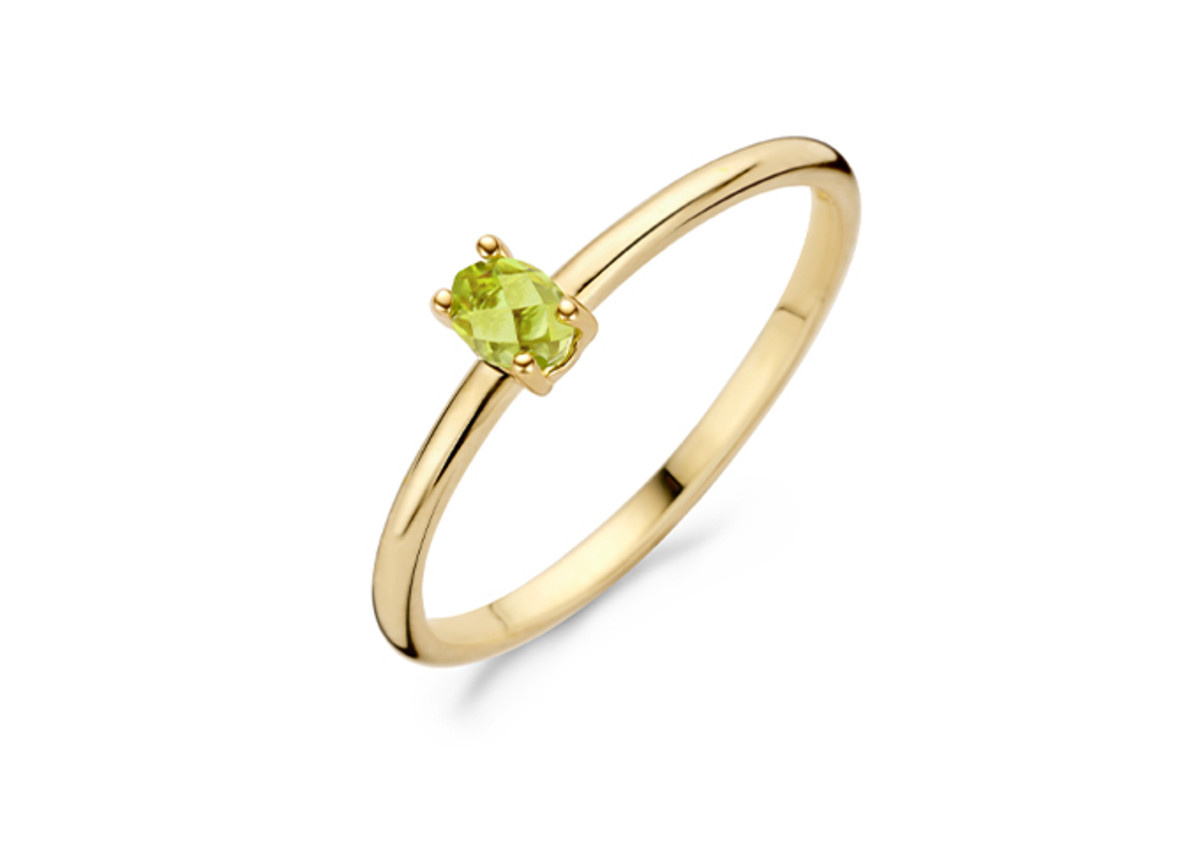 This yellow gold ring is refined, subtle and wearable every day. A cheerful add-on ring with a faceted green Peridot.