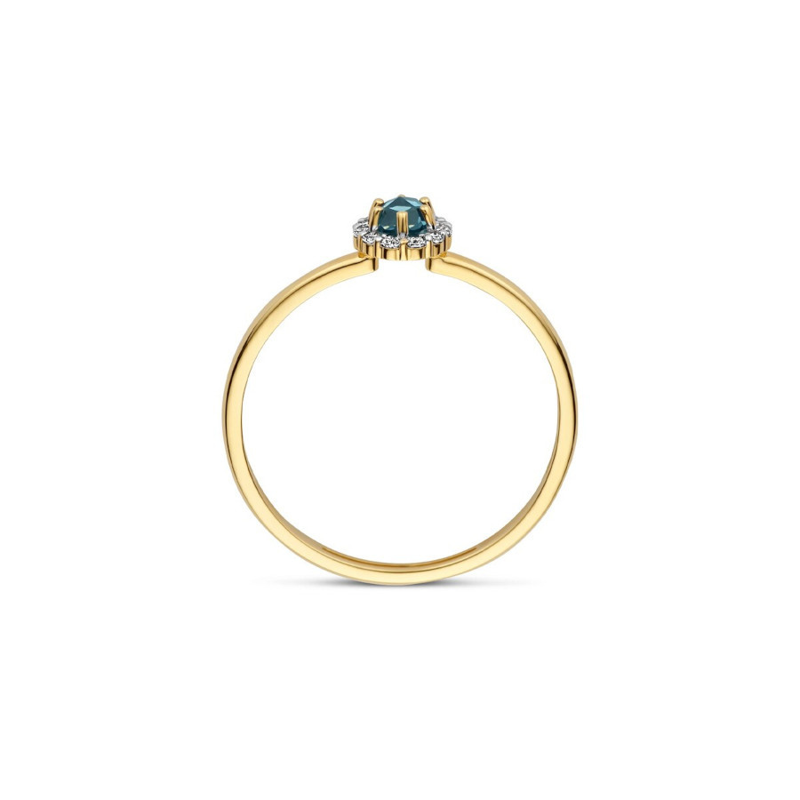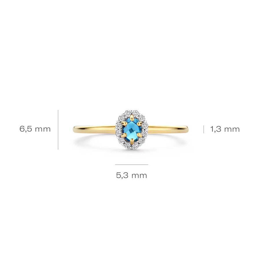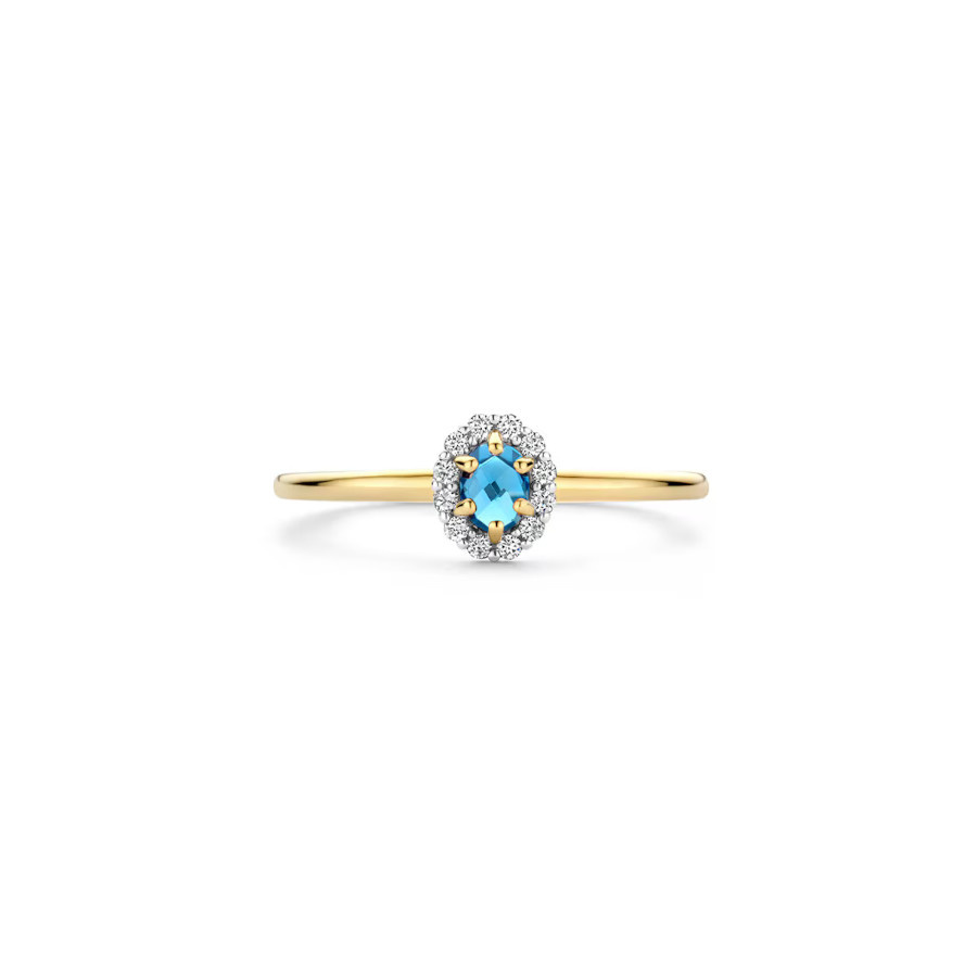 This yellow gold blush ring is refined, subtle and wearable every day. A cheerful add-on ring with blue Topaz.