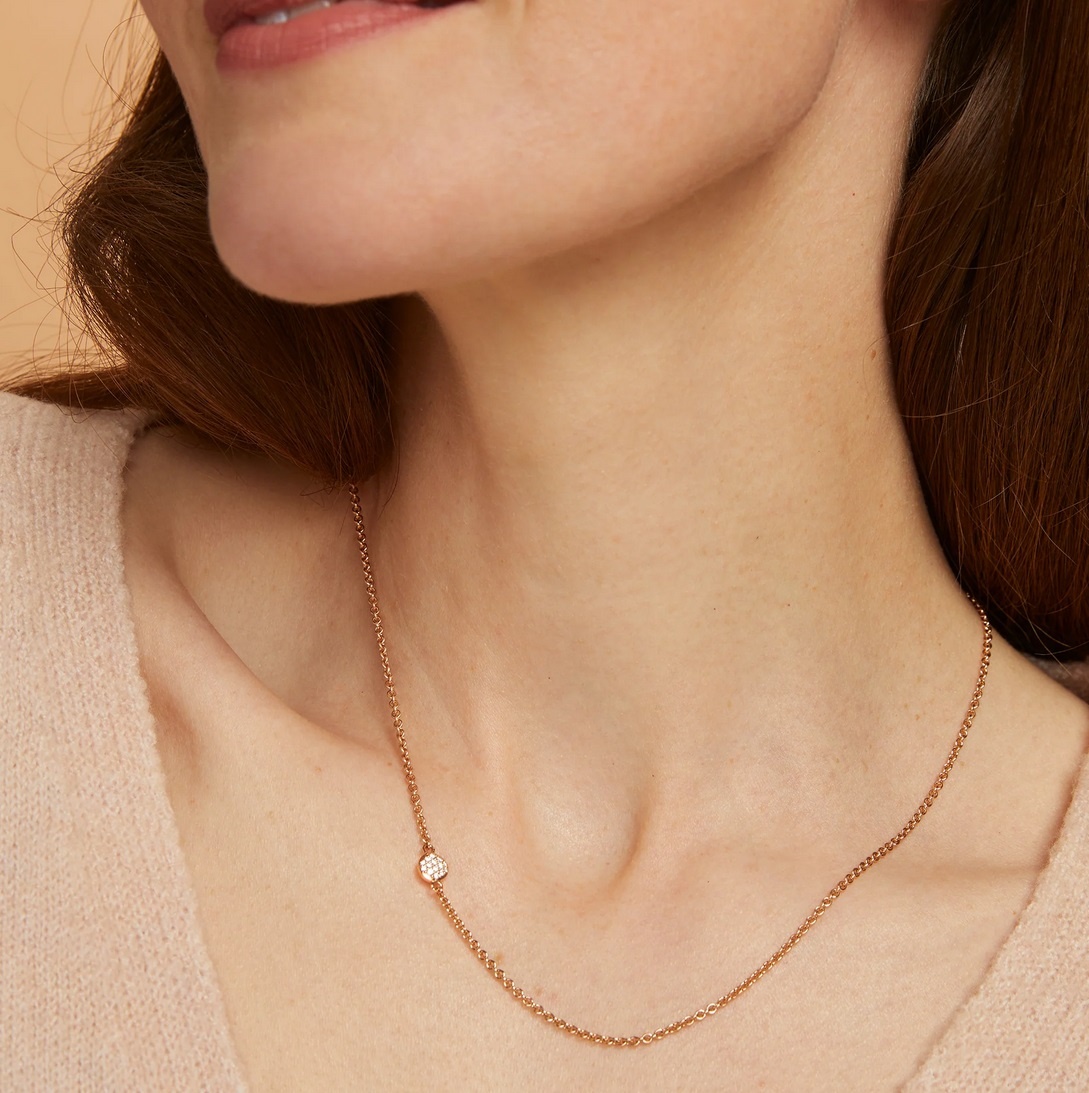This Stardust necklace from BRON is decorated with a round sequin. The sequin is set with beautiful white diamonds.