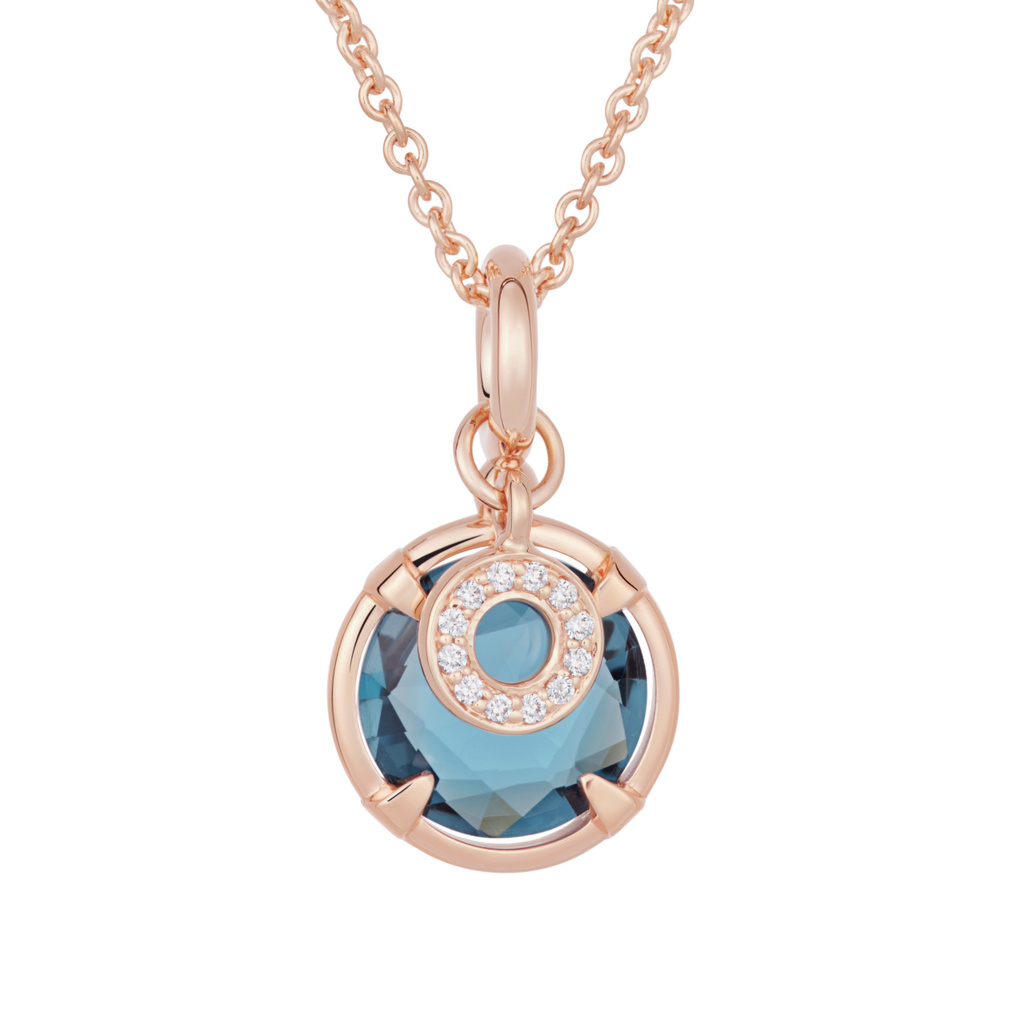Article number: 8HR3451TLBBRThis Mira Mira pendant by BRON is set with London Blue Topaz. A beautiful gemstone held in a playful and unique setting and combined with a cheerful Joy pendant set with diamonds.
