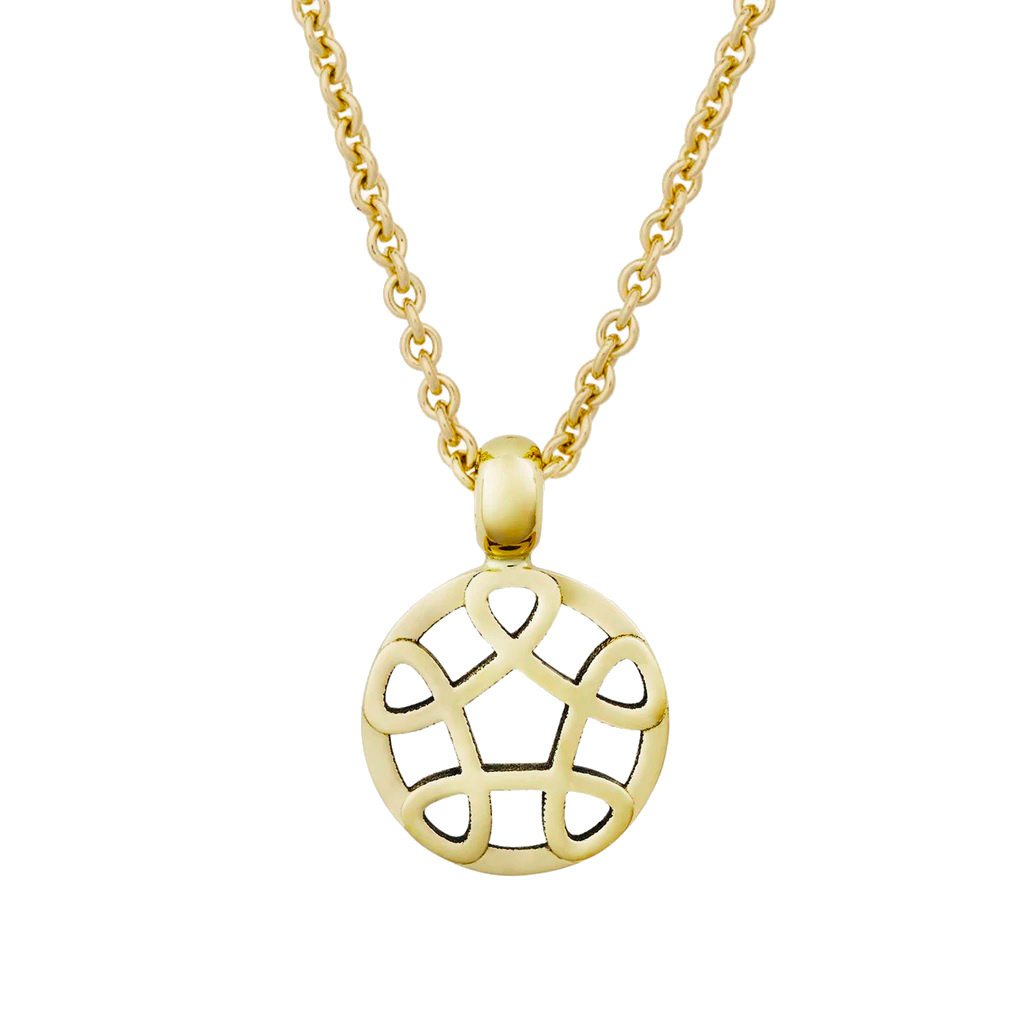 A beautiful Yellow gold pendant with graceful, round shapes. The polished pendant is 12mm and is supplied without a necklace. It can be worn on your own necklace or on one of the many Bron necklaces. This pendant is part of the 'Toujours Ajour' collection, a mysterious family that you must slowly unpack and discover.