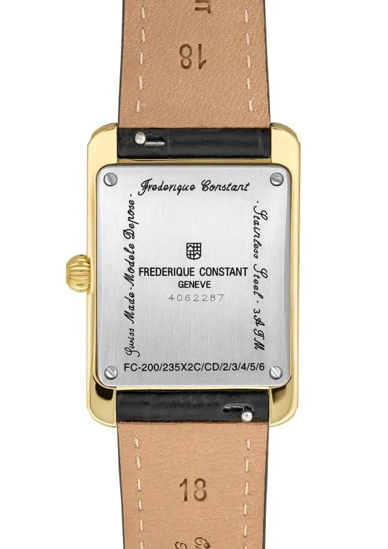 The Classics Carrée style evokes the Art Deco style of the 1920s and 1930s, with straight, clean lines and detailed shapes that deviate from the conventional circle. A beautiful white dial with Roman numerals and a small independent seconds hand at 6 o'clock. The classic black leather strap completes the watch. The watch has a quartz movement, is water-resistant to 30m, and comes with a 2-year warranty. A beautiful watch that can be worn as a piece of jewelry.