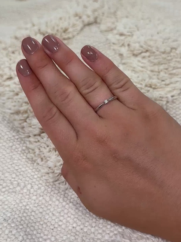 A sparkling, brilliant-cut diamond in a chaton setting adorns this timeless 14k white gold ring. The band has a diameter of 1.8mm and the diamond has a carat weight of 0.06ct with a W/SI quality. Beautiful as a classic solitaire but perfect for layering with other rings.