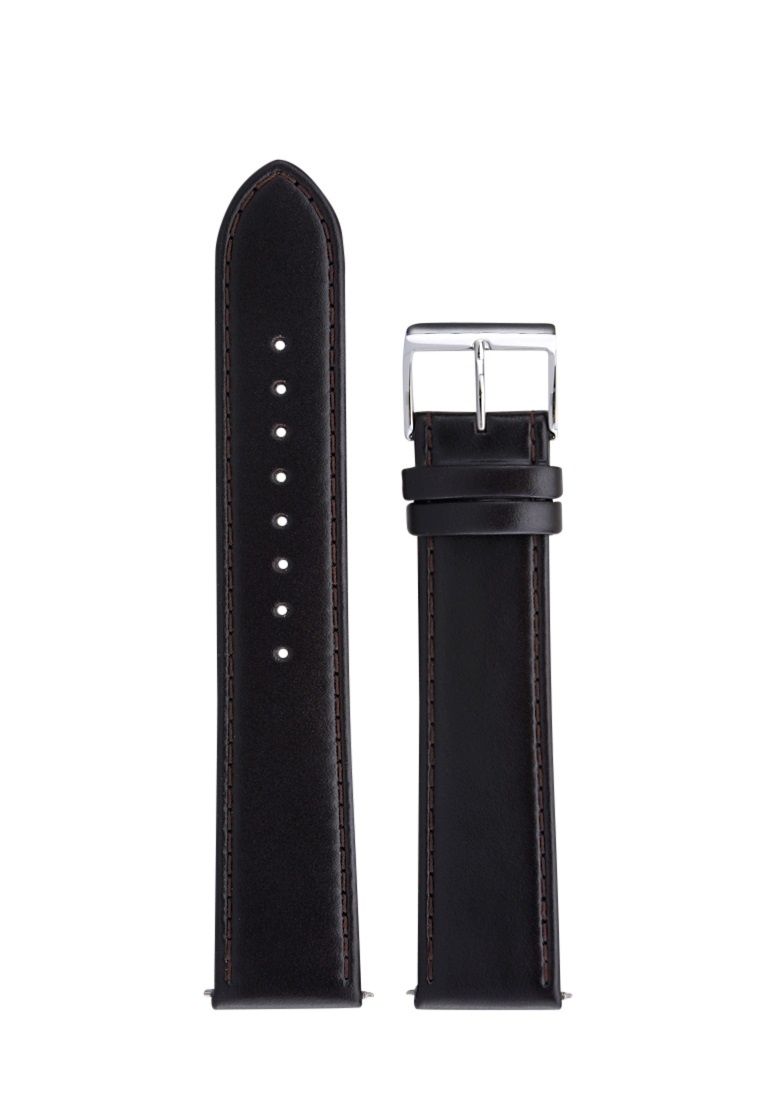JUNGHANS watch strap Dark brown leather strap with stainless steel buckle 20 mm, standard size.