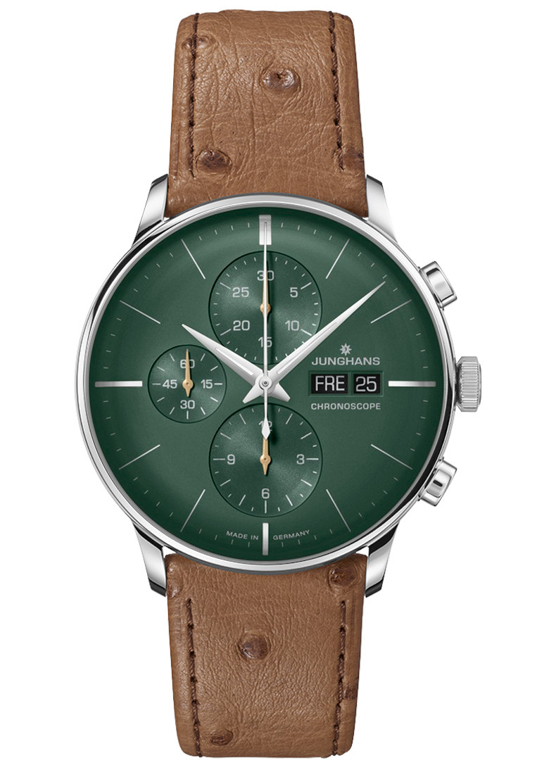 The Junghans Meister Chronoscope Automatic 27/4222.02 with green dial is sporty and classic with a unique appearance.