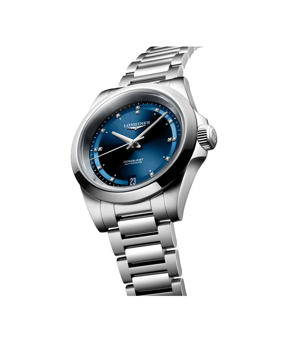 Article number: L3.430.4.97.6The Conquest line from Longines offers timeless ladies watches with a sporty touch. A scratch-resistant sapphire crystal and sturdy metal strap ensure durability and comfort.
