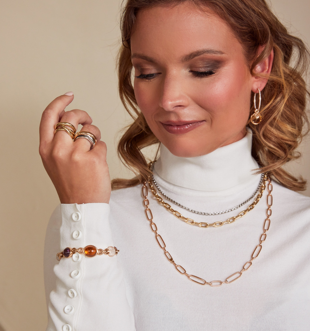 A beautiful necklace with a timeless but modern look. The narrow, round oval links alternate in sizes, creating a playful whole. Beautiful to wear alone but perfect to combine with other necklaces.