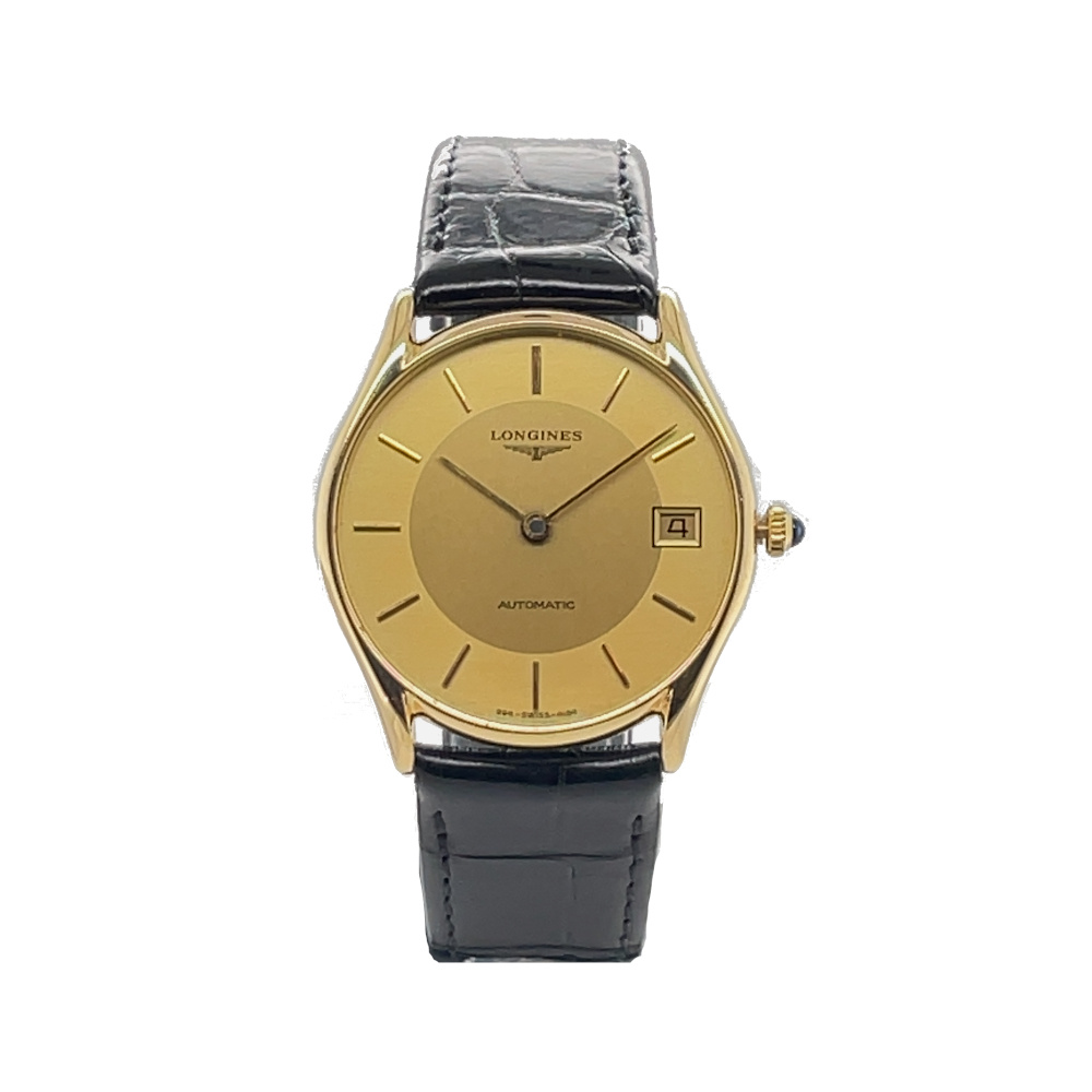 Article number: L994.1This PRE-OWNED LONGINES Lyre 14k Yellow Gold Automatic 33.5mm L994.1 is a classic gold dress watch with an understated appearance. The gold-colored dial with subtle gold index and hands gives a luxurious feeling.