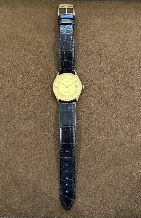 There are few signs of wear, only the dial and hands have light patina. A new original black alligator Longines watch strap has been fitted with a gold-plated Longines buckle.