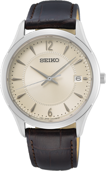 Article number: SUR421P1Seiko is known for quality and long-lasting wearing pleasure. This steel watch with a brown leather strap is timeless and everyday wearable. The watch has a cream-coloured dial and scratch-resistant sapphire glass.
