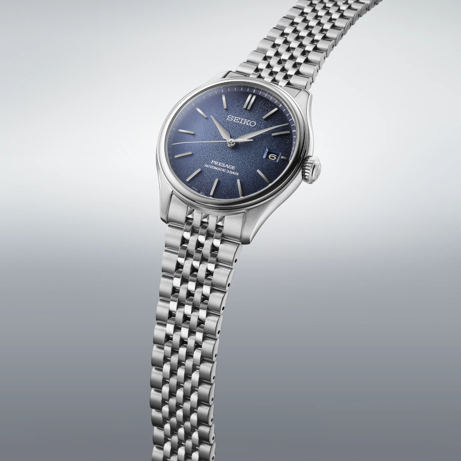 Discover this beautiful watch that embodies the essence of Japanese aesthetics. The delicate blue dial, inspired by the texture of natural Japanese silk, creates a captivating interplay of light and shadow. The stainless steel case and bracelet exude refined elegance, while the double-domed sapphire crystal adds a touch of luxury. Powered by the 6R55 automatic movement with a 72-hour power reserve, this watch offers exceptional precision and smooth second-hand movement. With its classic design and meticulous craftsmanship, this watch is the perfect embodiment of timeless elegance. The watch is 100m water resistant and comes with a 3-year warranty.