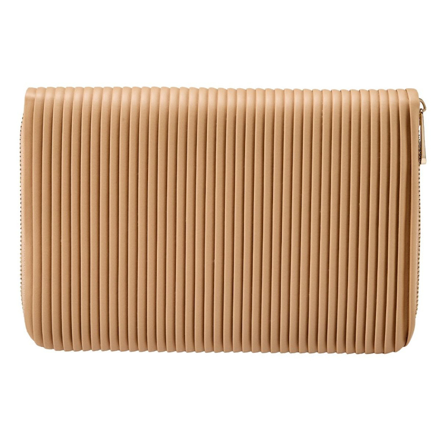 This fantastic jewelry case is crafted from mocha leather and has a modern, pleated, luxurious look with gold-tone details. Inside, you'll find LusterLoc™-lined storage for rings and earrings, a zippered pocket, five necklace hooks and four bracelet hooks with snap closures, and elastic pockets to prevent jewelry from tangling. Simply beautiful. The case measures 22.9cm x 15.2cm x 2.5cm.