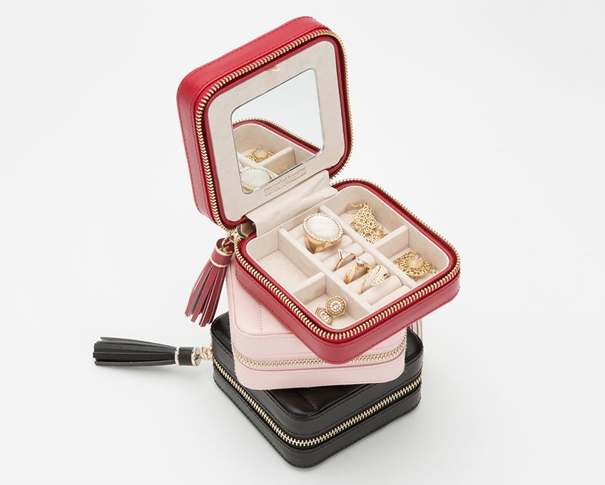 A luxurious small travel and storage case for jewelry. Equipped with a patented inner layer that greatly reduces oxidation for up to 30 years of storage.