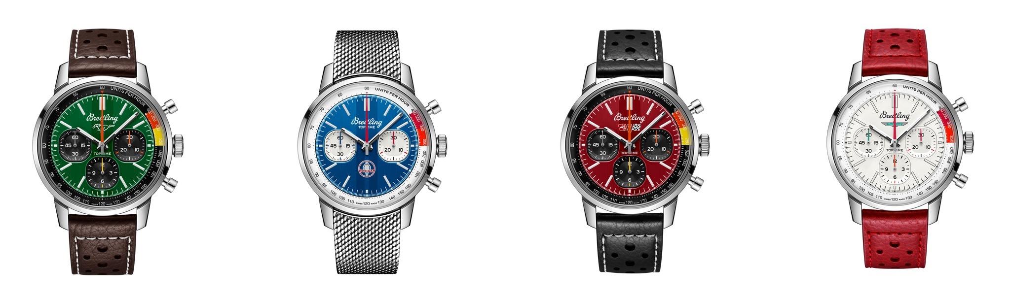 De Top Time blijft Breitlings horloge voor snelheidszoekers met een voorliefde voor stijl, wat vandaag de dag betekent automobilisten, motorrijders, surfers en digitale nomaden. De bijgewerkte look blijft trouw aan de originele opvallende ontwerpen van de Top Time, terwijl ze in Breitlings kenmerkende modern-retrostijl worden gebracht. Om ze te creëren, werkt Breitling samen met enkele van de coolste merken in de motorsport!