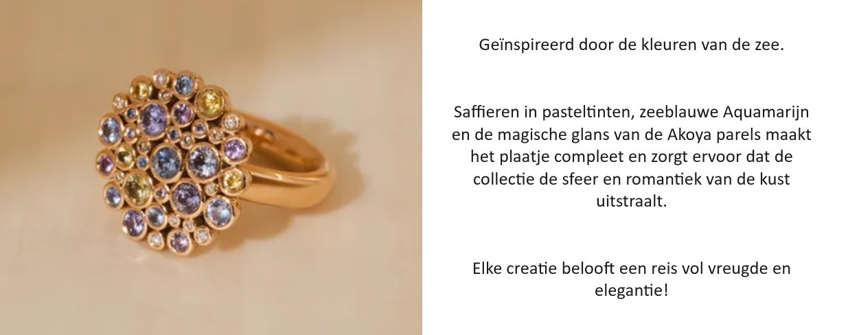 Deze allernieuwste collectie van BRON vangt de charme van de lente. Pastelkleurige edelstenen, glitteren als de eerste zonnestralen op zee.