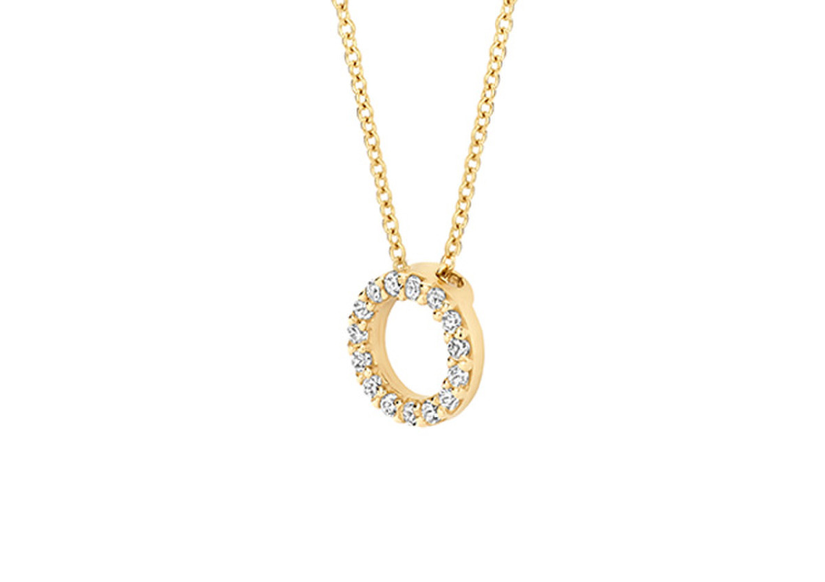 Dit stijlvolle 14k geelgouden collier heeft een cirkelvormige hanger met zirkonia’s in pavé-zetting. De doorsnede van de hanger is 7.3 mm. Elegant op zichzelf of in combinatie met andere sieraden uit onze collectie.