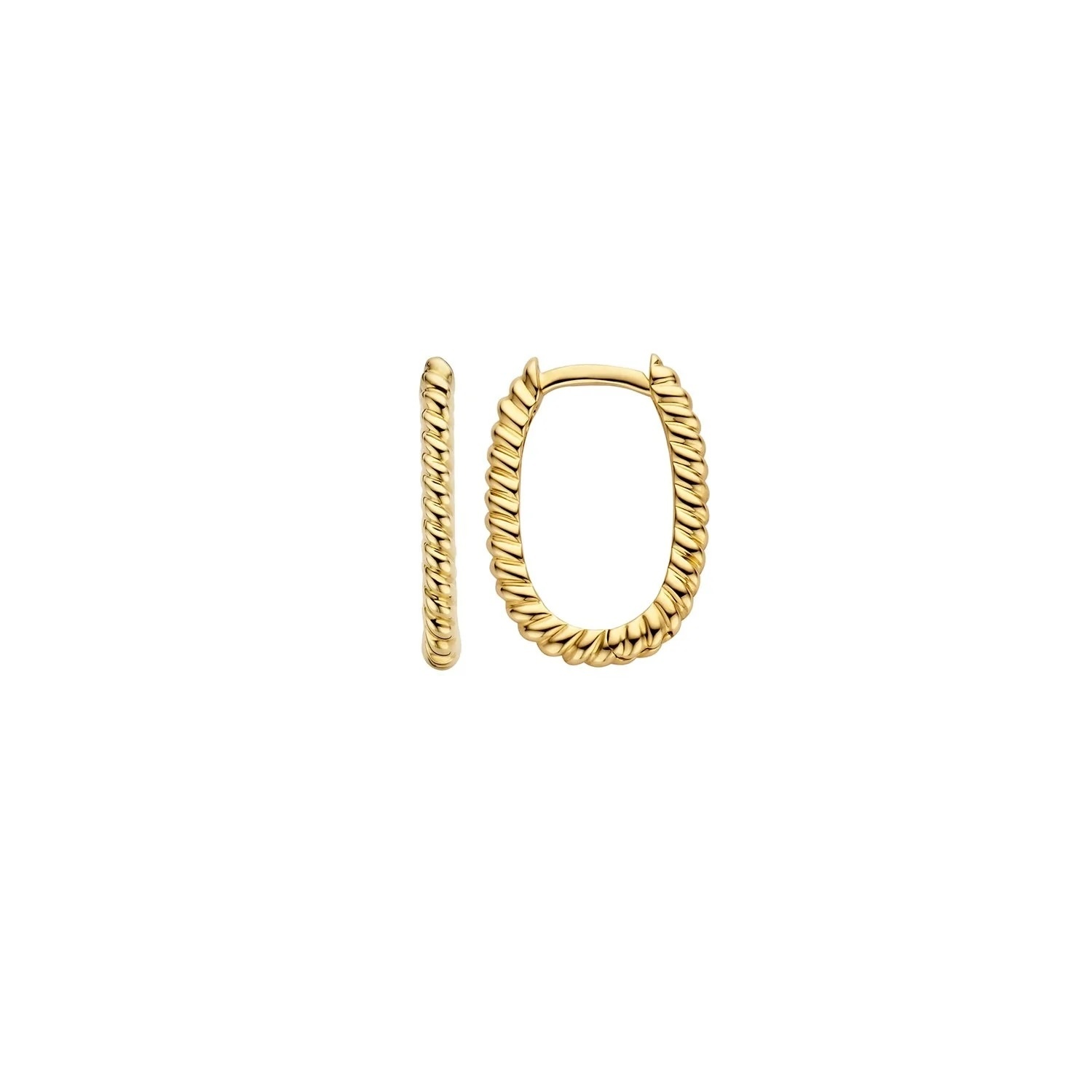 Alsof een gouden draad zich eromheen wikkelt: dat geeft deze ovaalvormige 14k geelgouden oorringen een heel bijzondere uitstraling. Ze hebben een grootte van 16mm en de een dikte van 1.8mm. Ze staan prachtig op zichzelf, maar matchen ook mooi met andere (oor)sieraden uit onze collectie.