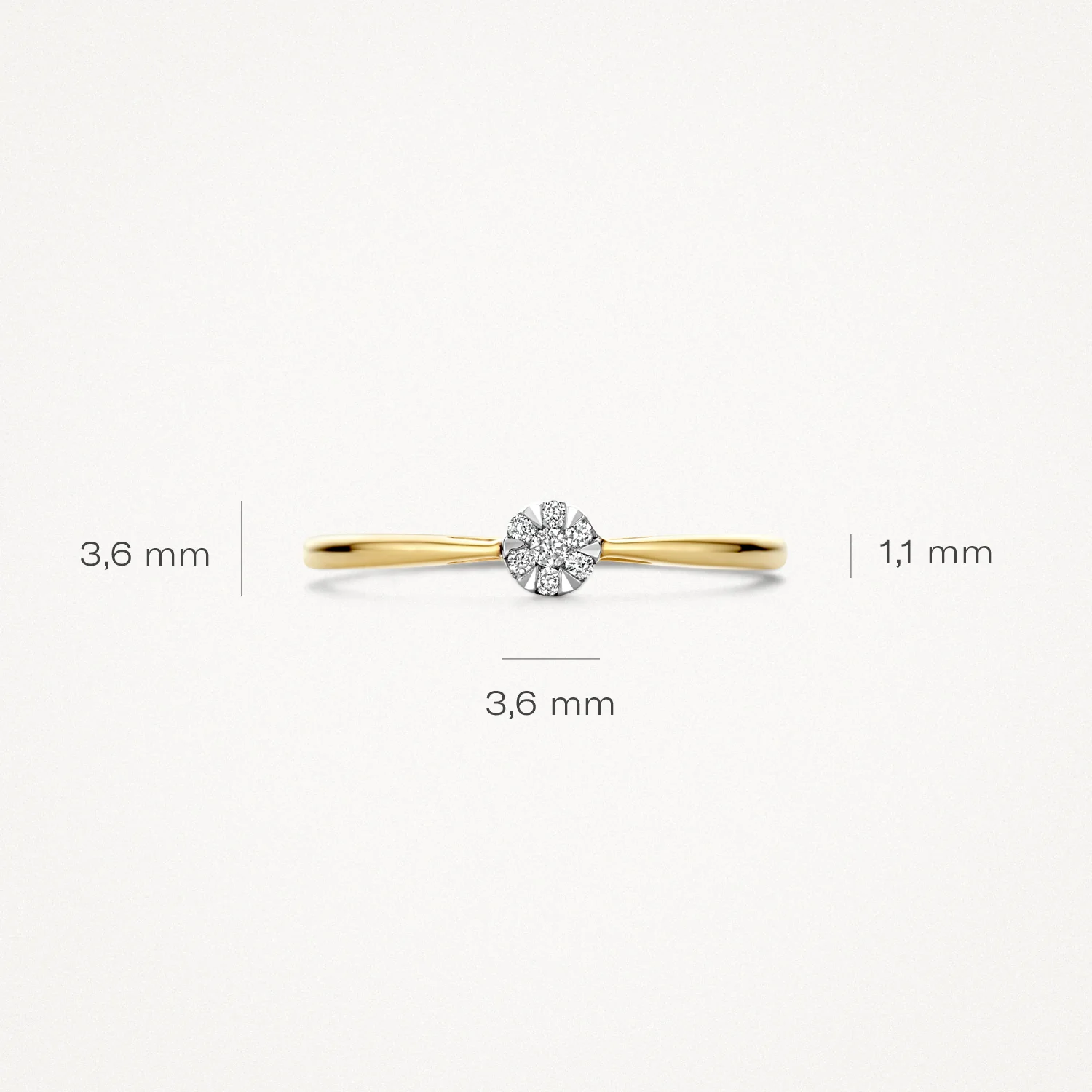 Deze elegante 14k geelgouden ring wordt gesierd door sprankelende diamanten in illusiezetting. De band heeft een breedte van 1.4mm en de diamant een totaal karaatgewicht van 0.05ct. Om de diamanten optimaal te laten schitteren zijn zij in een witgouden zetting geplaatst. De ring is prachtig te combineren met andere (diamanten) aanschuifringen uit onze collectie.