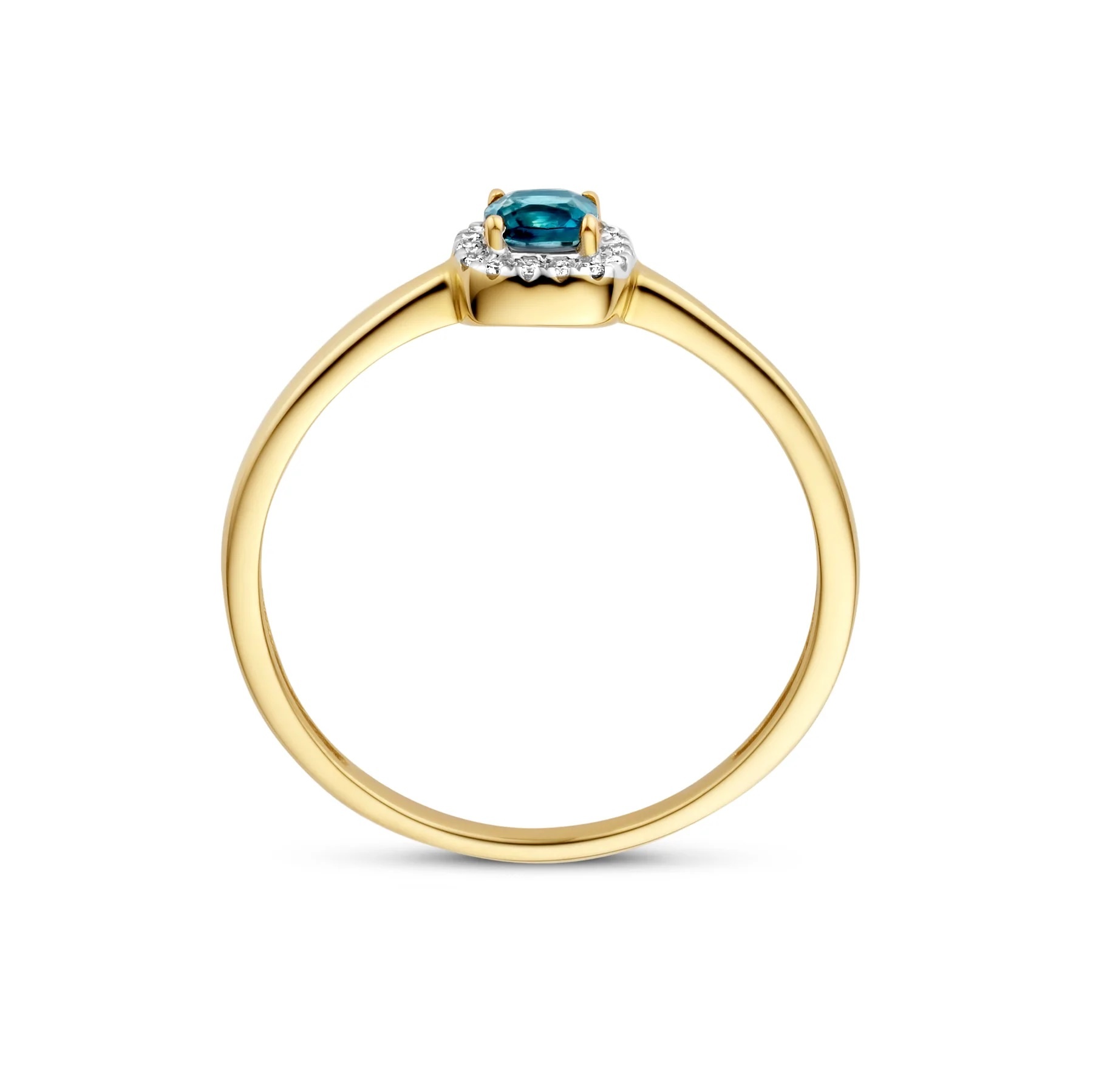Deze bicolor ring van Blush 1636YDL is sierlijk, elegant en tijdloos. Een klassieke ring met een London Blue Topaas en daaromheen een randje van diamanten.