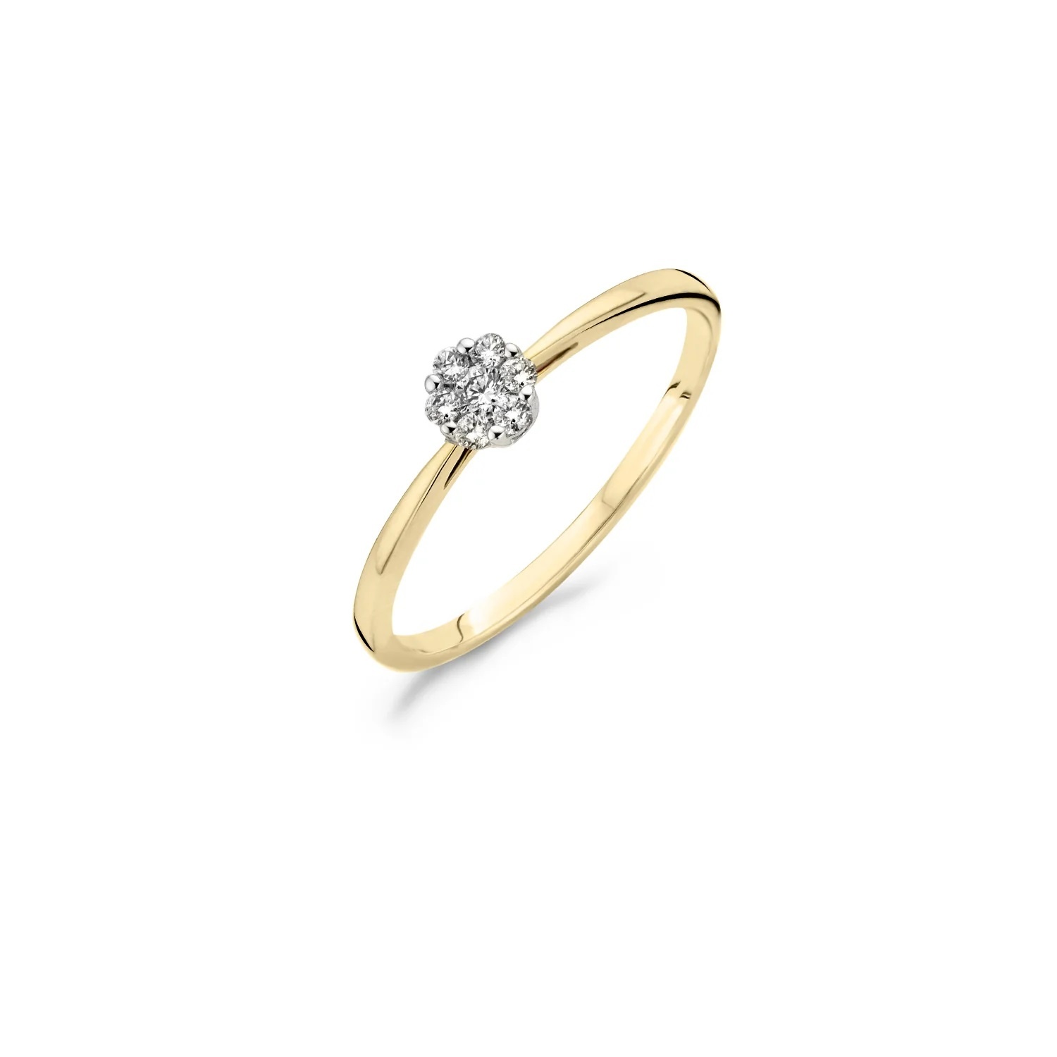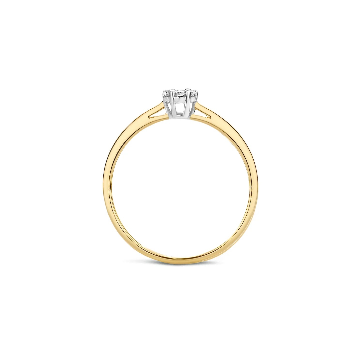 Een glinsterende briljant geslepen diamant met een karaatgewicht van 0.07ct vormt het middelpunt van deze 14k geel- en witgouden ring. De band heeft een doorsnee van 1.4 mm. Deze eyecatcher is schitterend als solitair of gecombineerd met andere (aanschuif)ringen uit onze collectie.