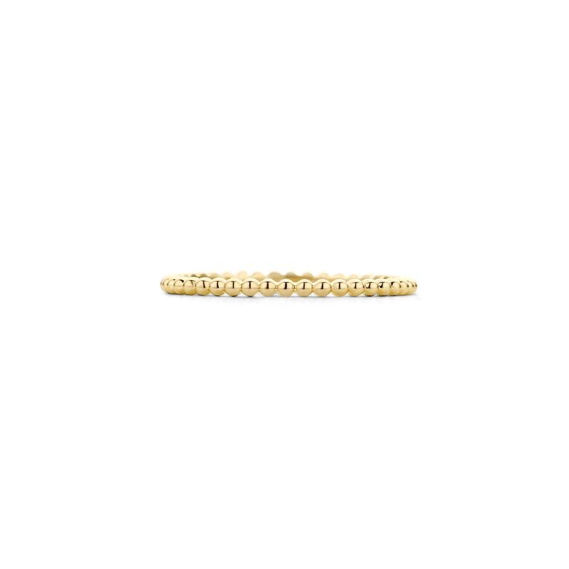 Deze simpele, stijlvolle ring van 14k geelgoud heeft een bolletjesmotief. De band is 1,4 mm breed. Heel mooi in combinatie met andere aanschuifringen ringen uit onze collectie.