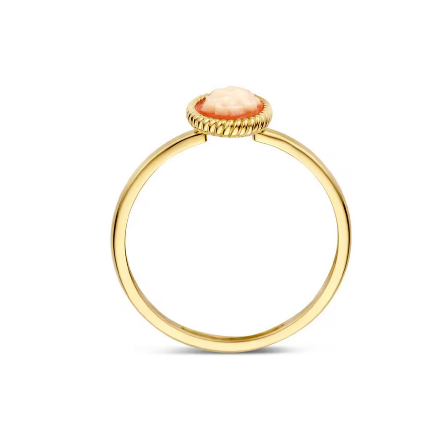 Artikelnummer: 1250YCADeze geelgouden Blush ring is verfijnd , subtiel en alledaags draagbaar. Een fantastische aanschuifring versierd met Camee.