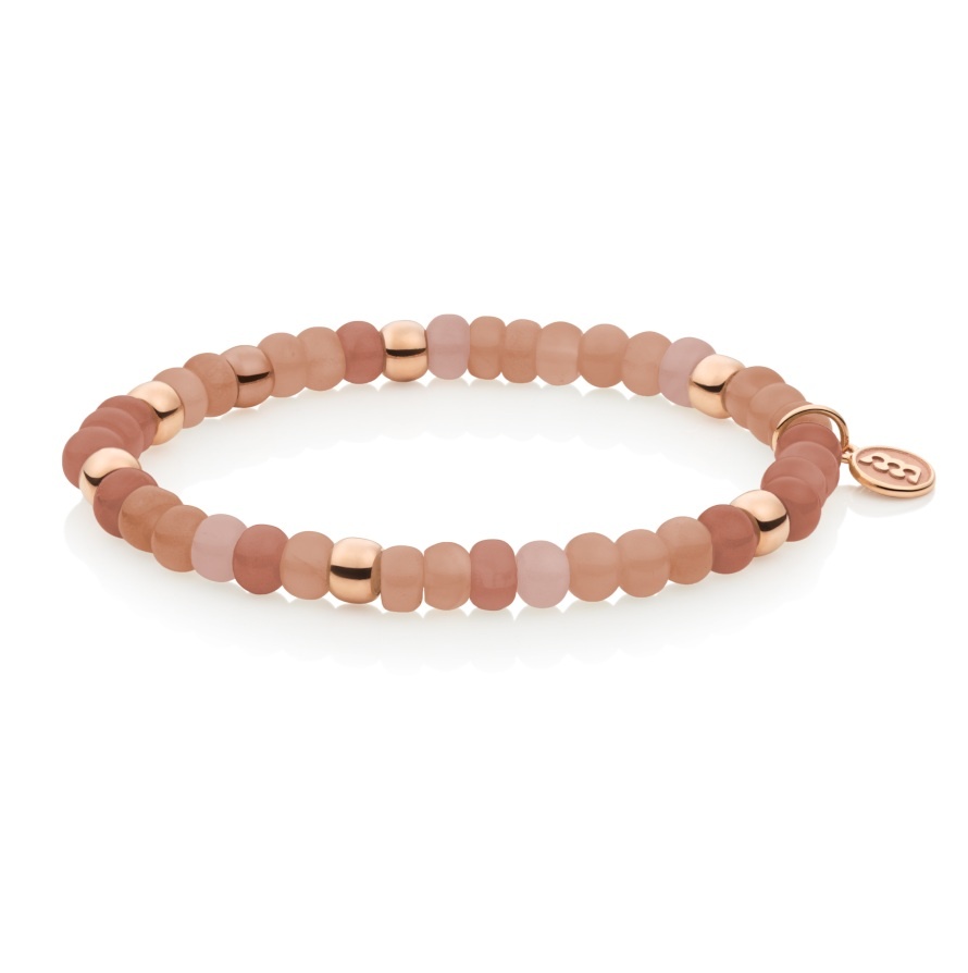 De edelstenen vormen samen met 7 roségouden ornamentjes en het Bron label een prachtig geheel. De verschillende tinten van de edelsteen bruine Maansteen zorgen voor een elegant en neutraal juweel. De armband is fantastisch om solitair te dragen maar perfect om te combineren met andere armbanden. Dit model is onderdeel van de ''reflex''-collectie, eindeloos - flexibel en ademt ongedwongen luxe!