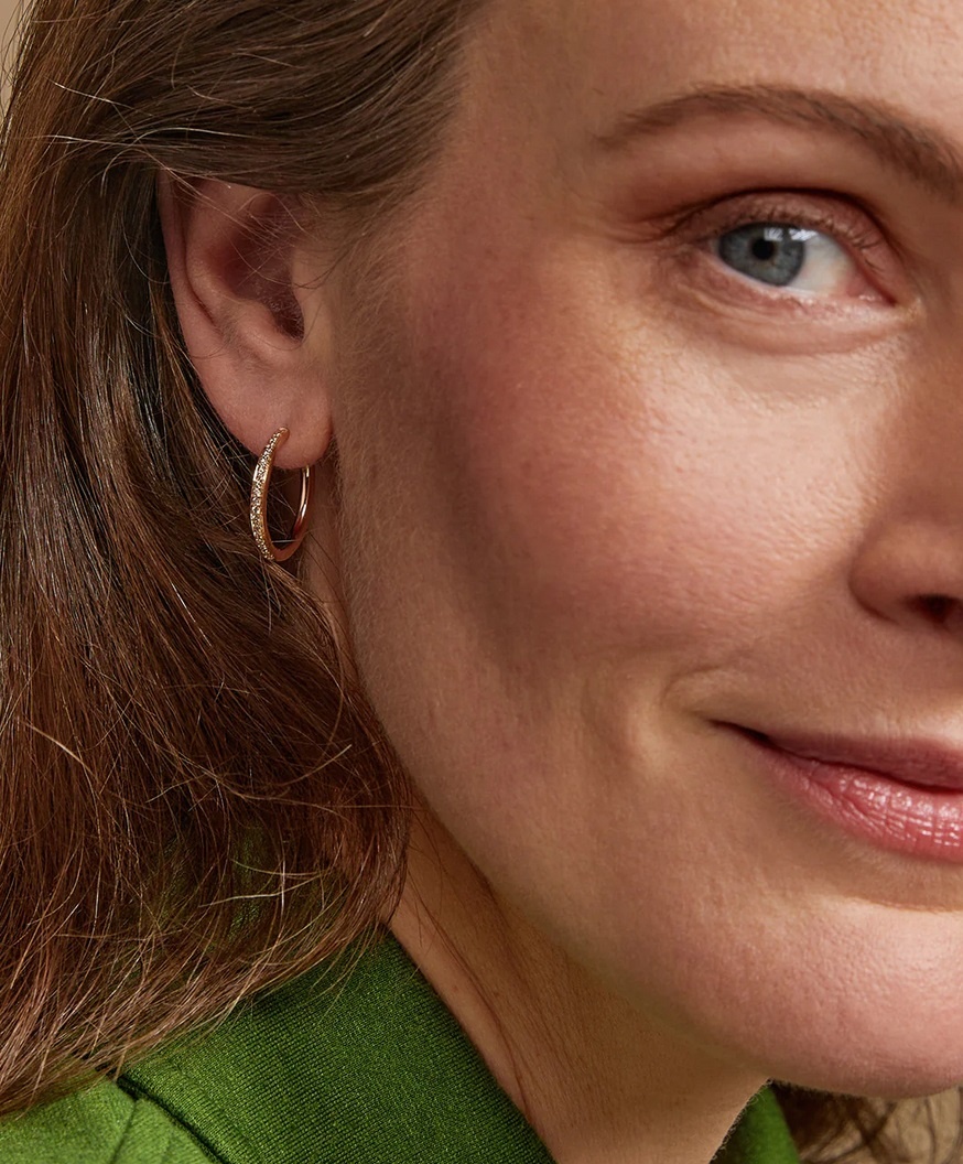 Ingetogen luxe door de champagne diamanten waarmee ze bezet zijn. Ze hebben een doorsnede van 20mm en een breedte van 2mm. In totaal zit er 0.22ct briljant in verwerkt. Prachtig om zo te dragen maar perfect om te combineren met verschillende creoolaanhangers van Bron. Dit model is onderdeel van de 'Lux'-collectie, een luxe en tijdloos juweel voor elke gelegenheid!