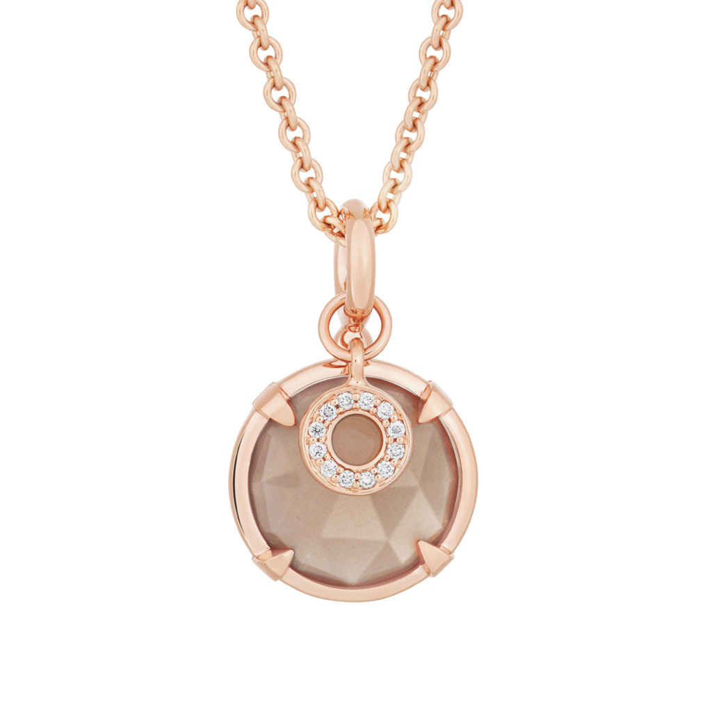 Deze Mira Mira hanger 8HR3452MSBBR van BRON is gezet met bruine Maansteen. Een prachtige edelsteen die wordt vastgehouden door een speelse en unieke zetting en wordt gecombineerd met een vrolijke Joy hanger bezet met diamant.