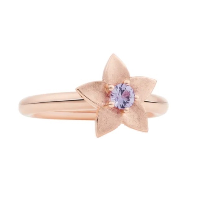 Artikelnummer: 8RR4916MLKDeze Poppy ring van BRON is terug van weggeweest, en hoe! Een vrolijke bloemen design met een schitterende edelsteen van lila Saffier in het midden.