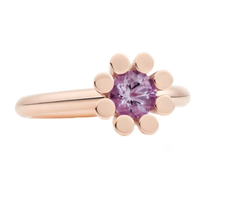 Geïnspireerd op de klassieke entourage ring maar helemaal van deze tijd. De Amethyst wordt vastgehouden door moderne zetpoten maar krijgt alle aandacht. De edelsteen is 6mm en facet geslepen. Dit model is onderdeel van de 'Sprite'-collectie, het ontwerp is teruggebracht tot de essentie en met haar frisse vrouwelijke uitstraling sprankelt de Sprite bij elke outfit.