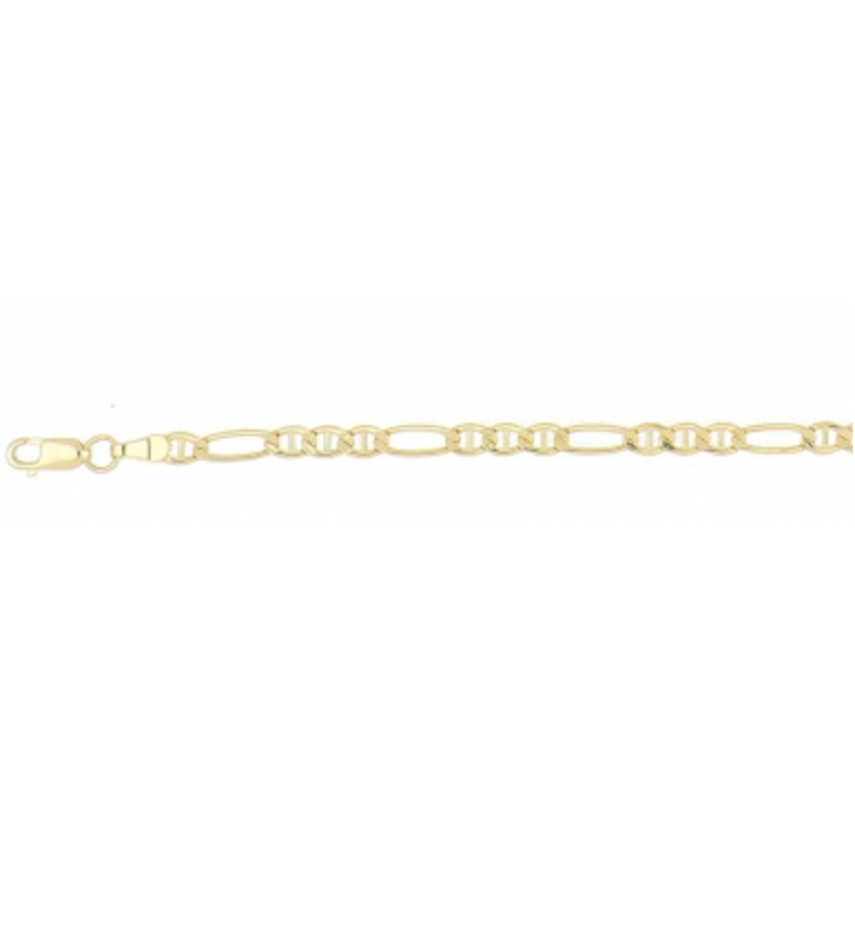 Artikelnummer: 40-VHF0521De sieraden van Fjory vinden hun oorsprong bij een fantastische Nederlandse uitvinding; een luxe juweel met een zilveren kern. Deze 5mm VH Figaro schakel armband 40-VHF0521 is handgemaakt en van hoge kwaliteit.