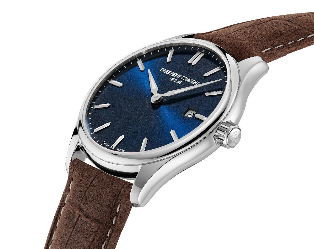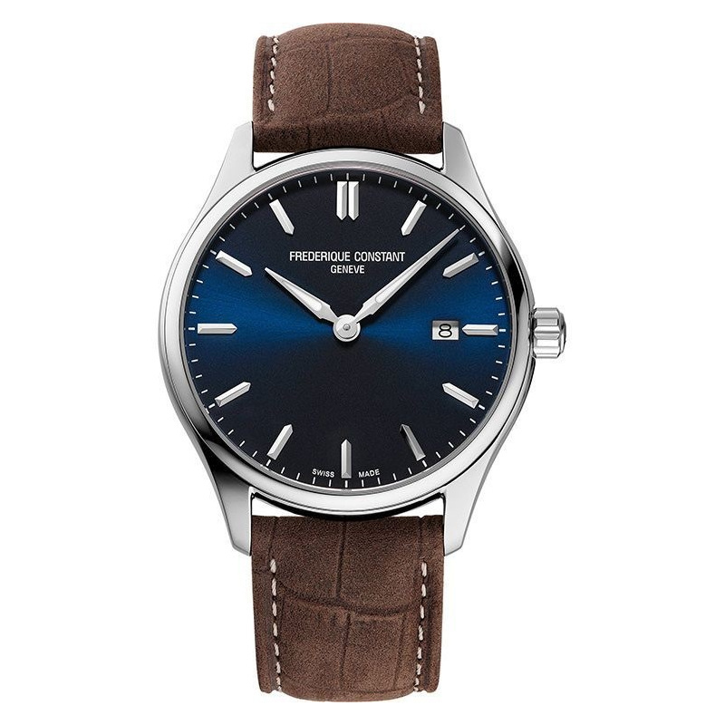Artikelnummer: FC-220NS5B6-LSDit Classics herenhorloge met blauwe wijzerplaat is een elegante verschijning, prachtig gemaakt met een krasvast saffierglas en geleverd met een bruin lederen band. De kastmaat 40mm is perfect voor bij een overhemd. Het horloge laat de tijd en de datum zien, en heeft geen seconden wijzer, wat een mooi rustig beeld geeft.