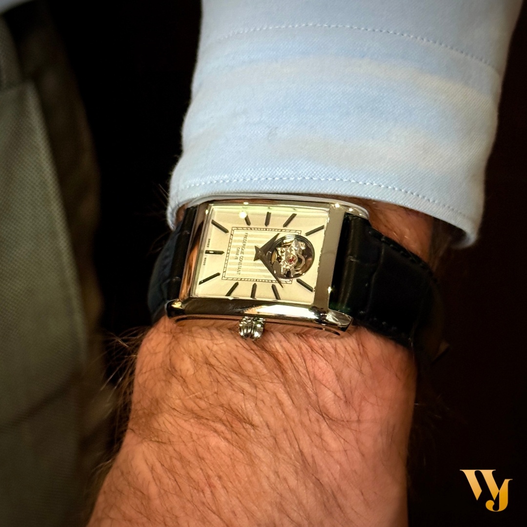 Artikelnummer: FC-311S4C6Dit rechthoekige Classics Heartbeat herenhorloge FC-311S4C6 is een elegante verschijning, prachtig gemaakt met een krasvast saffierglas en geleverd met een zwarte leren band. Door een opening in de wijzerplaat, en de glazen bodem, is er een blik op het prachtige mechanische uurwerk te werpen.