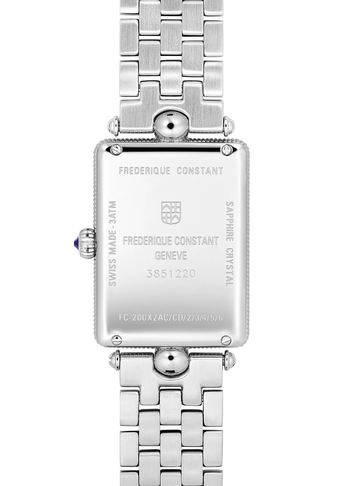 Artikelnummer: FC-200MPW2AC6BDe FC-200MPW2AC6B is een elegant rechthoekig dameshorloge met een verfijnd, gegraveerde parelmoer wijzerplaat met Romeinse cijfers. Het horloge heeft een Quartz uurwerk en een krasvast saffierglas. De soepele metalen band geeft deze klassieker een modern/sportief tintje.