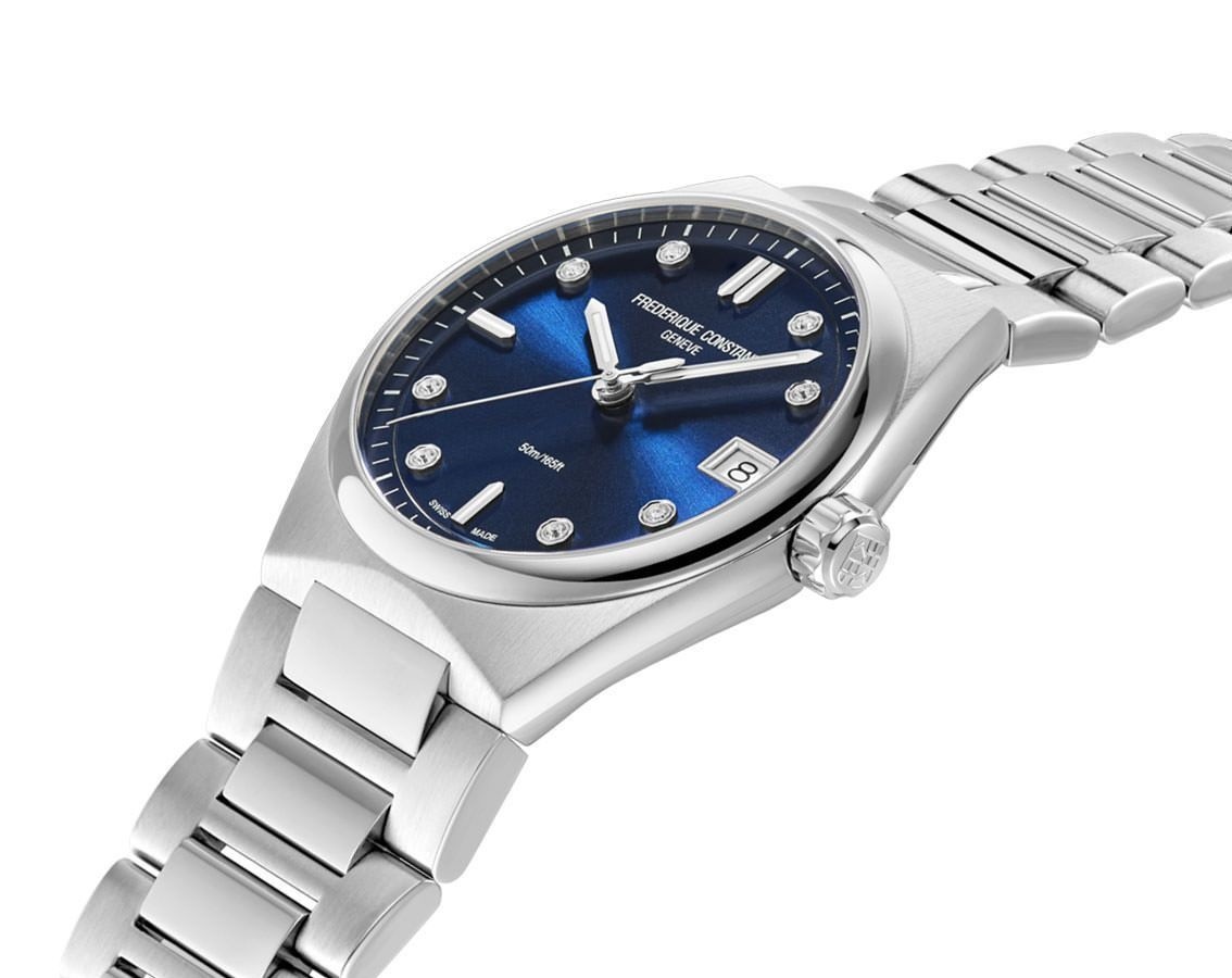 Dit model van Frederique Constant is zowel sportief als elegant. De blauwe wijzerplaat heeft 8 diamanten en een datum aanduiding. Dit prachtige horloge heeft een stijlvolle stalen band. Een chic tijdloos horloge dat ook prima sportief gedragen kan worden.