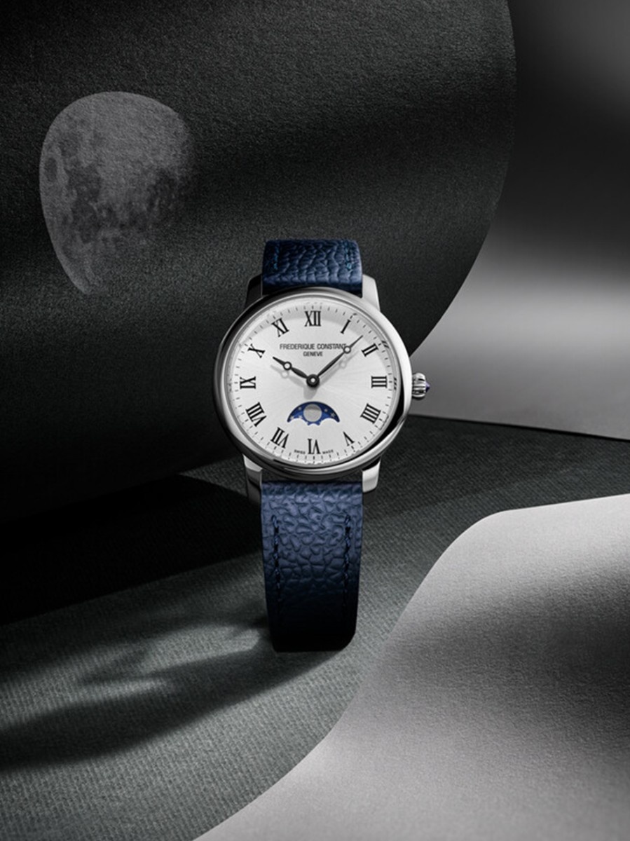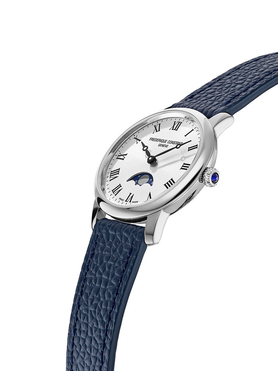 Artikelnummer: FC-206RS1S6De Classics Slimline Moonphase van Frederique Constant FC-206RS1S6 is een schitterend elegant en tijdloos dameshorloge. Dit model heeft een grootte van 30mm en ligt prachtig vlak op de pols.