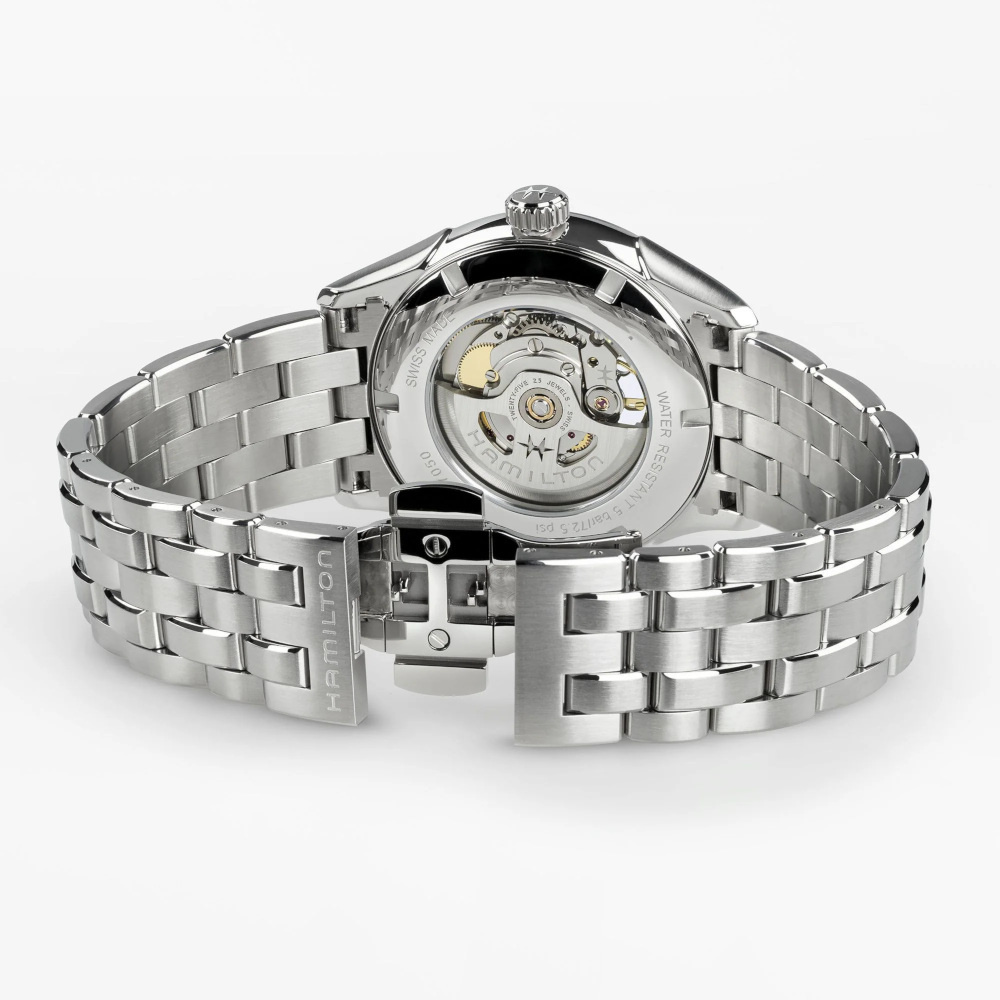 Artikelnummer: H32705140De Jazzmaster Open Heart biedt een inkijkje in het krachtige innerlijke mechanisme en laat precisie centraal staan met een nieuwe 42 mm wijzerplaat. Met een fascinerende, fonkelend middernachtblauwe wijzerplaat combineert dit opvallende horloge de moderniteit van stedelijke architectuur met de oneindigheid van de kosmos. De wijzerplaat toont het steeds verder ontwikkelende vakmanschap en de aandacht voor detail van Hamilton en zet het H-10 automatische uurwerk in de schijnwerpers. De Jazzmaster Open Heart Auto is voorzien van een gangreserve van 80 uur, een Nivachron™-balansveer en een geraffineerde roestvrijstalen horlogeband.