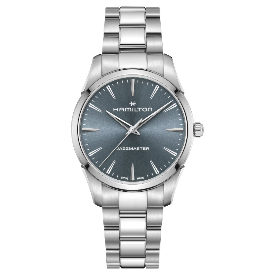 Artikelnummer: H32461141De Jazzmaster Quartz 40mm H32461141 met poederblauwe wijzerplaat is elegant, veelzijdig en biedt tijdloze verfijning in een modern silhouet.