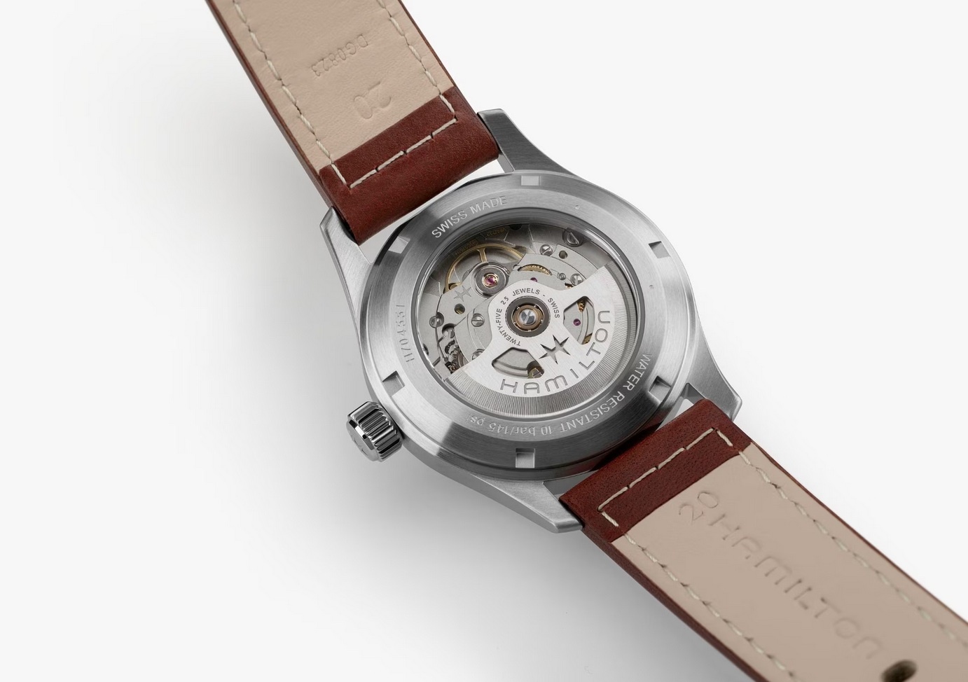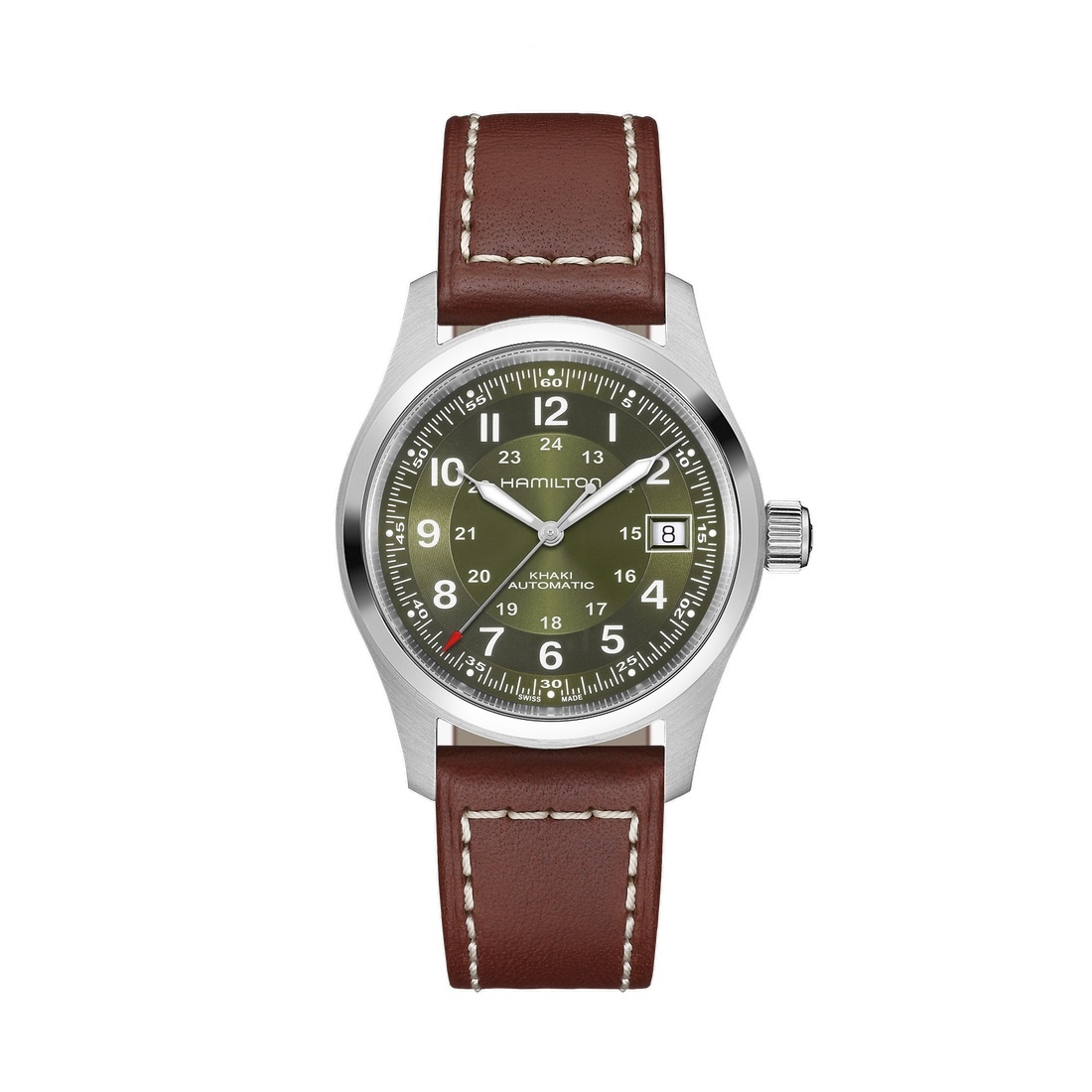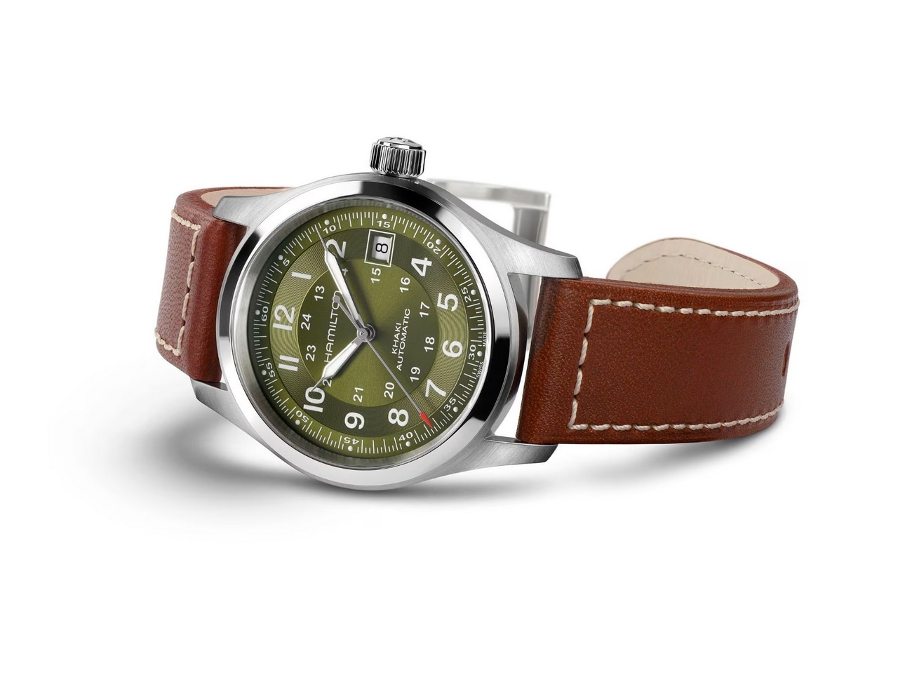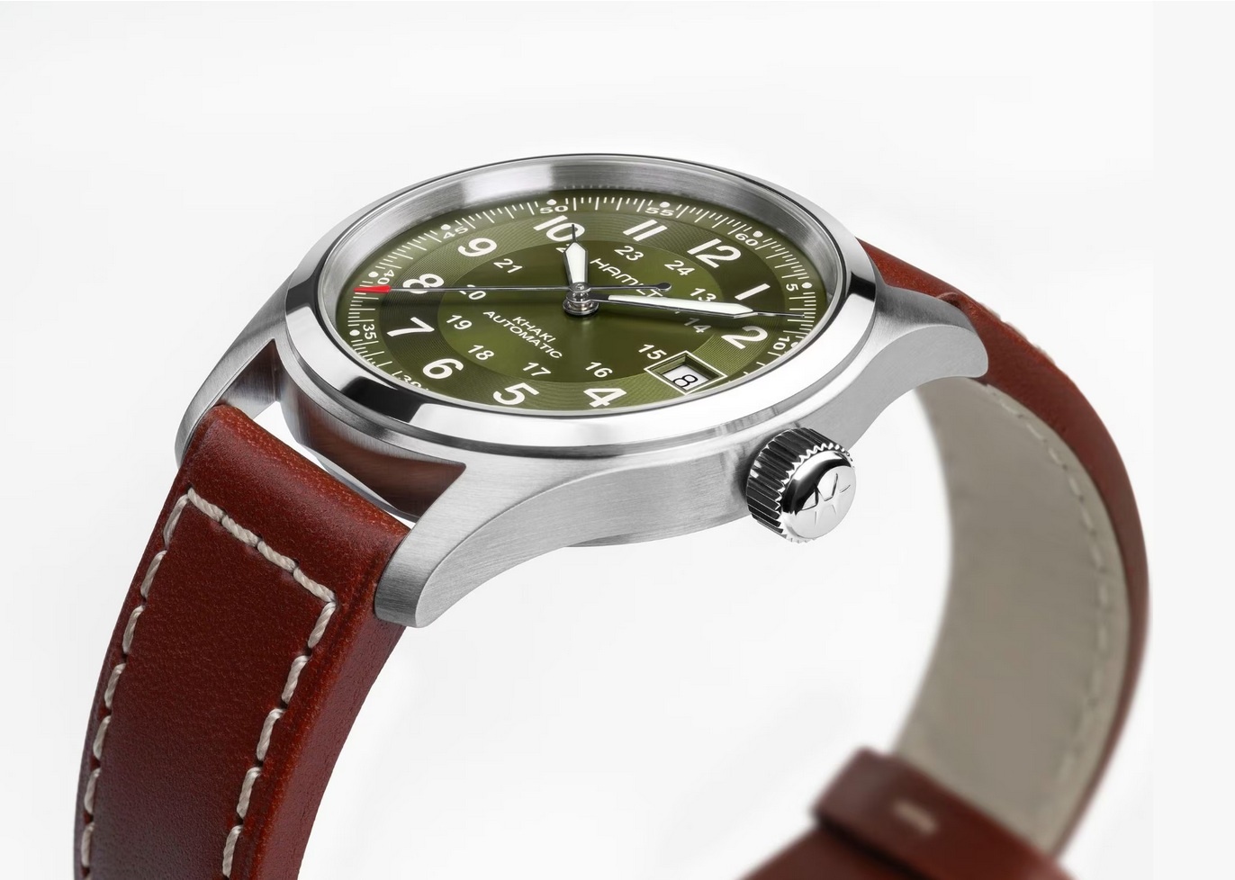 De kakigroene sunray wijzerplaat wordt gecombineerd met een golvend effect op de uurring, wat het licht reflecteert en zorgt voor meer textuur en diepgang. Het vormt samen met de bruine, lederen band een perfecte combinatie. Ontworpen voor actie en gemaakt voor avontuur: het exclusieve H-10 automatische kaliber heeft een gangreserve van 80 uur en zal u niet in de steek laten.