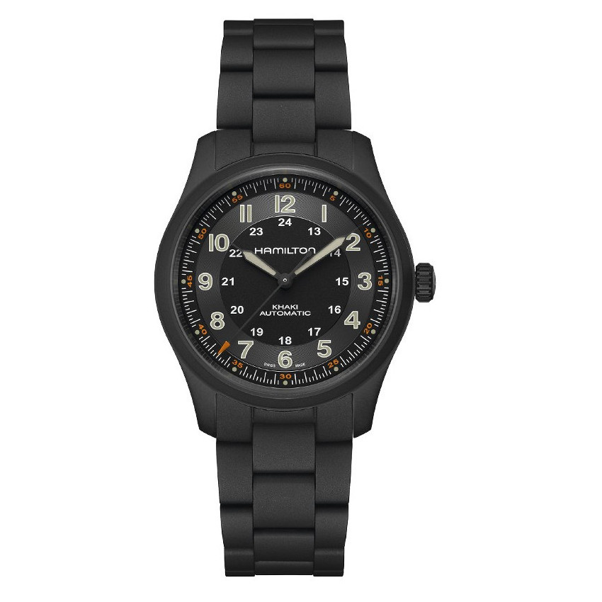 Artikelnummer: H70215130Met een zwarte PVD-gecoate titanium kast en band is de 38mm Khaki Field Titanium een zeer veelzijdig horloge dat u bij elke gelegenheid om de pols doet. Met de zwarte wijzerplaat met optimale leesbaarheid houdt u de tijd bij tijdens elk avontuur. De band heeft een gezandstraalde afwerking die robuustheid en karakter geeft aan het militaire design. De Khaki Field Titanium combineert lichtgewicht functionaliteit met militaire stijl en is uw betrouwbare compagnon als u op zoek bent naar nieuwe ervaringen.