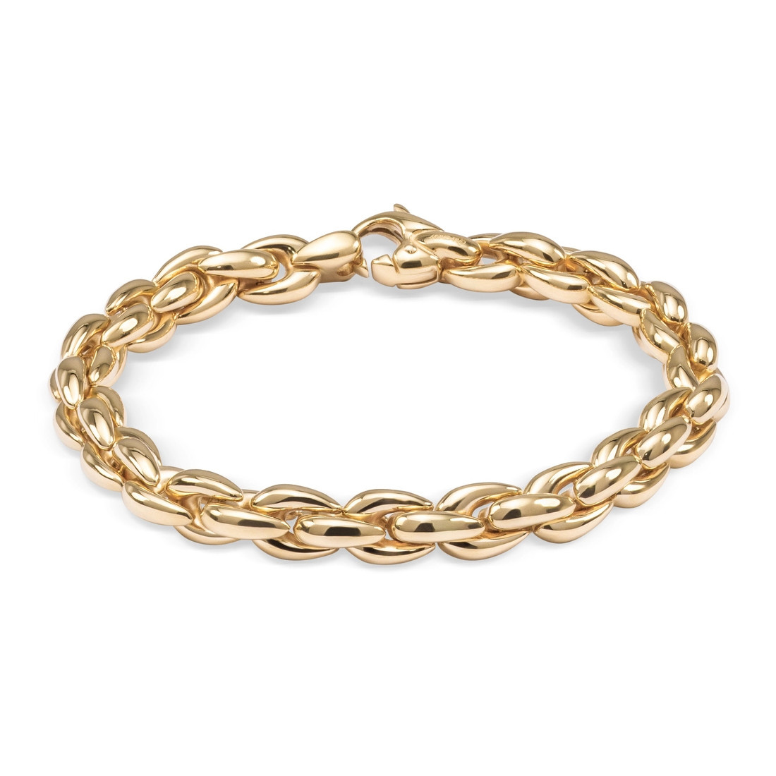 Artikelnummer: 612065Deze speelse fantasie armband is tijdloos en fris, de strakke vormen van de schakels dikte van de geelgouden schakels, geven body en uitstraling.