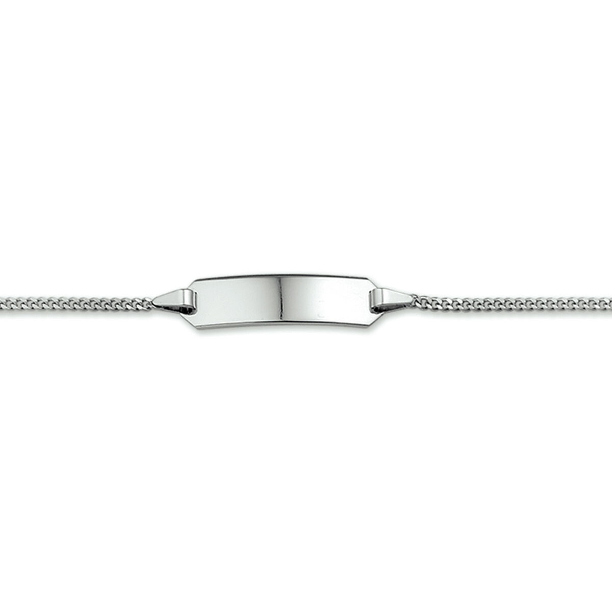 Artikelnummer: 608846witgouden graveerarmband met een poli afwerking. De graveerplaat heeft een dikte van 0.5mm. De schakelbreedte is 1.0mm. De draaglengte is 11-13cm.